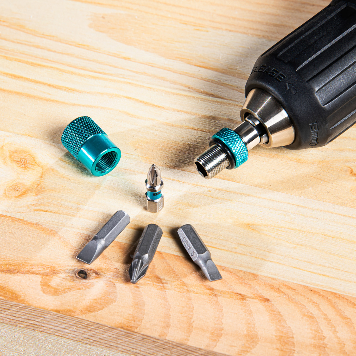 - Надежная фиксация — внутренний магнит крепко удерживает биту.
