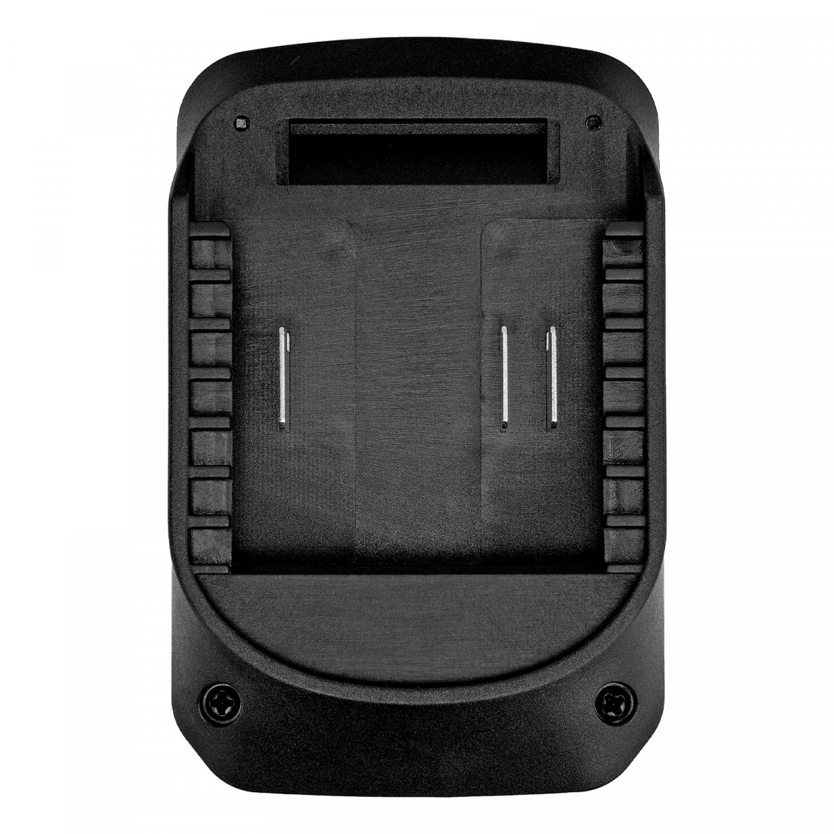 - Простое использование — достаточно присоединить верхнюю часть адаптера к инструменту или зарядному устройству платформы Denzel Power System 18 V, а на нижнюю часть установить аккумулятор Denzel 20 V.