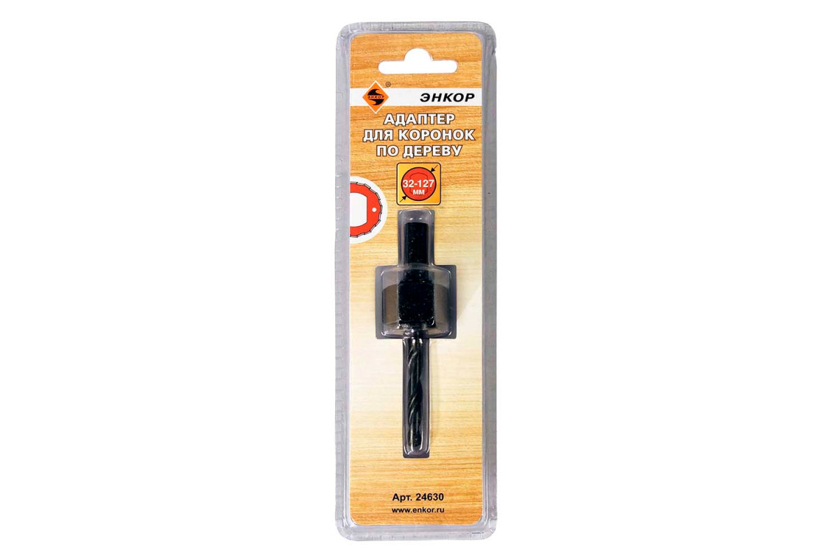 Адаптер Энкор 24630 используется совместно с коронками по дереву диаметром от 32 до 127 мм. С помощью приспособления коронка надежно фиксируется в патроне дрели. Адаптер имеет шестигранный хвостовик 3/8".