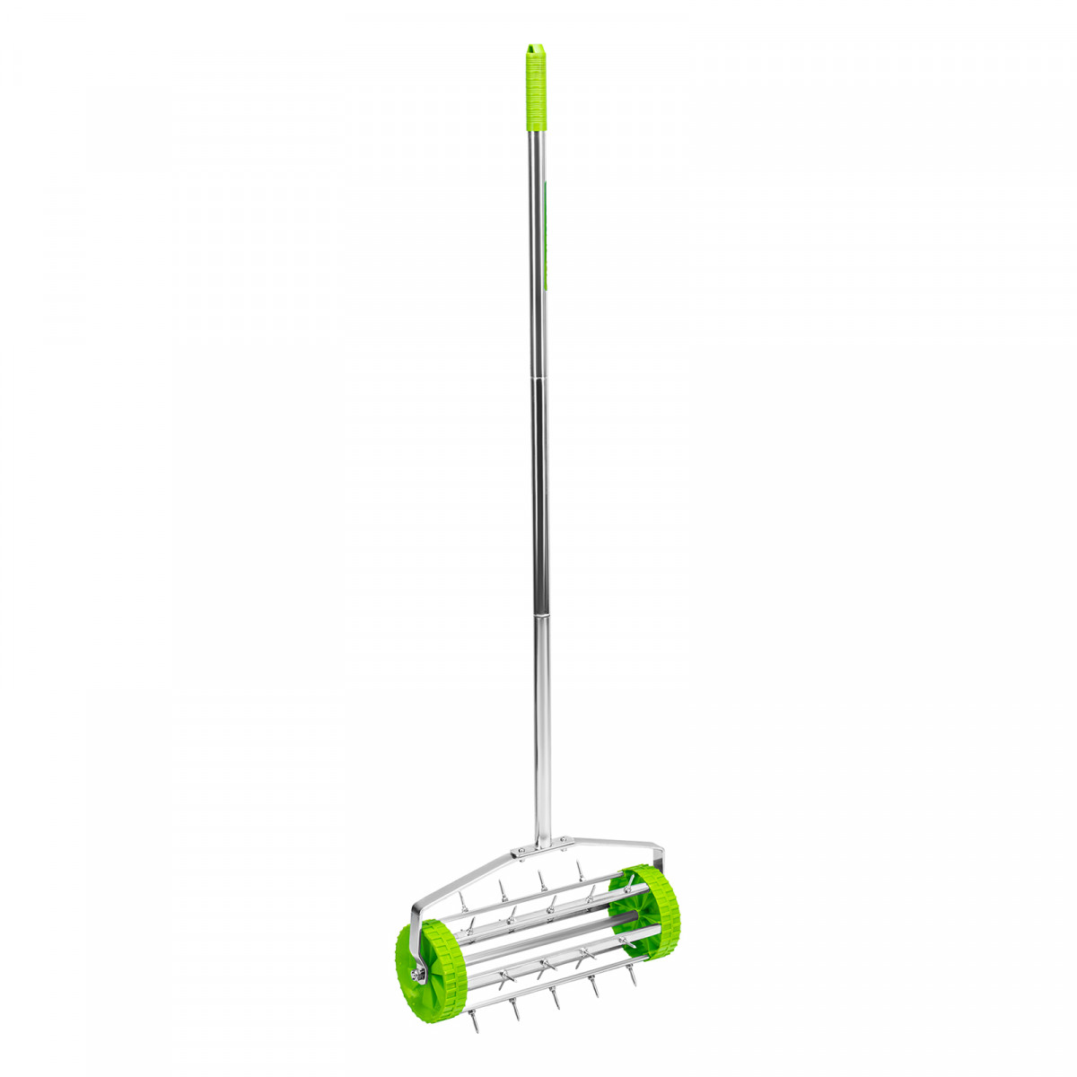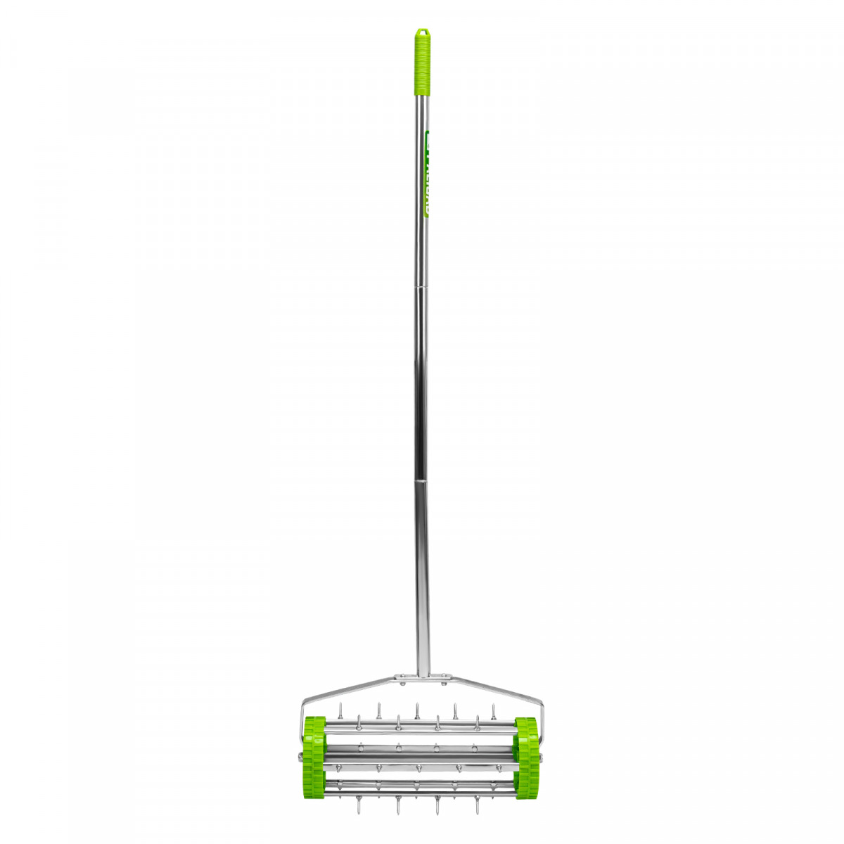 - Эффективная работа без лишних усилий — аэратор с острыми шипами позволяет ускорить процесс естественного роста газона без использования удобрений.
