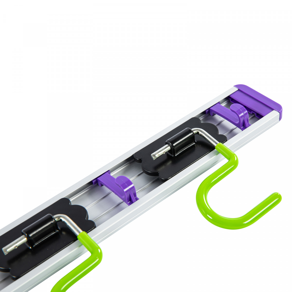 - Направляющая из алюминия обеспечивает надежное удержание крюков.