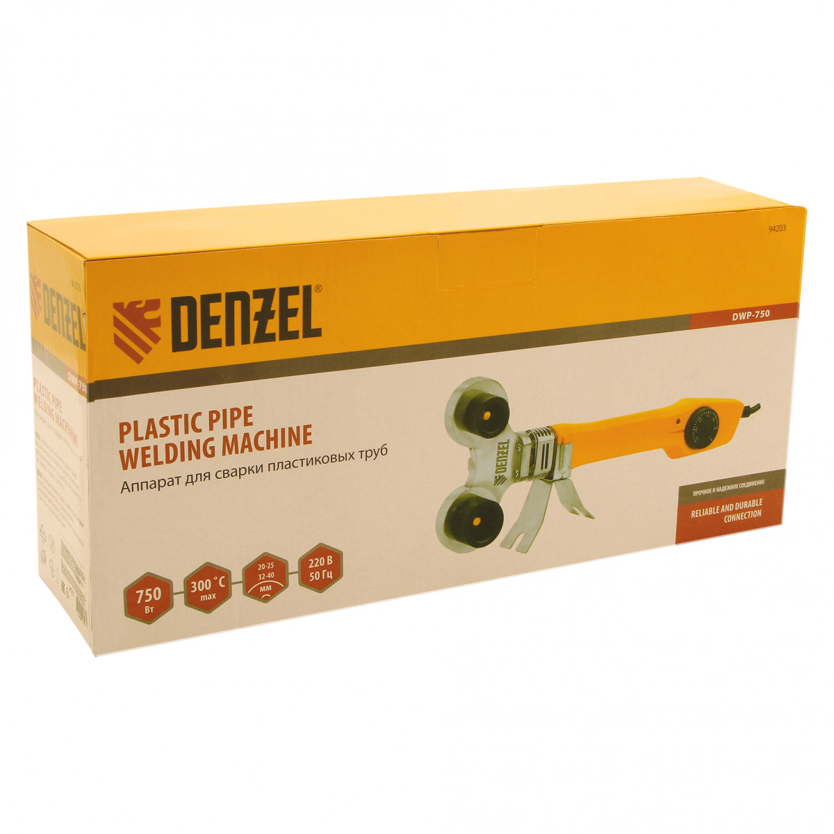 Аппарат для сварки пластиковых труб DWP-750, 750 Вт, 0-300 град, 4 насадки, 20-40 мм Denzel