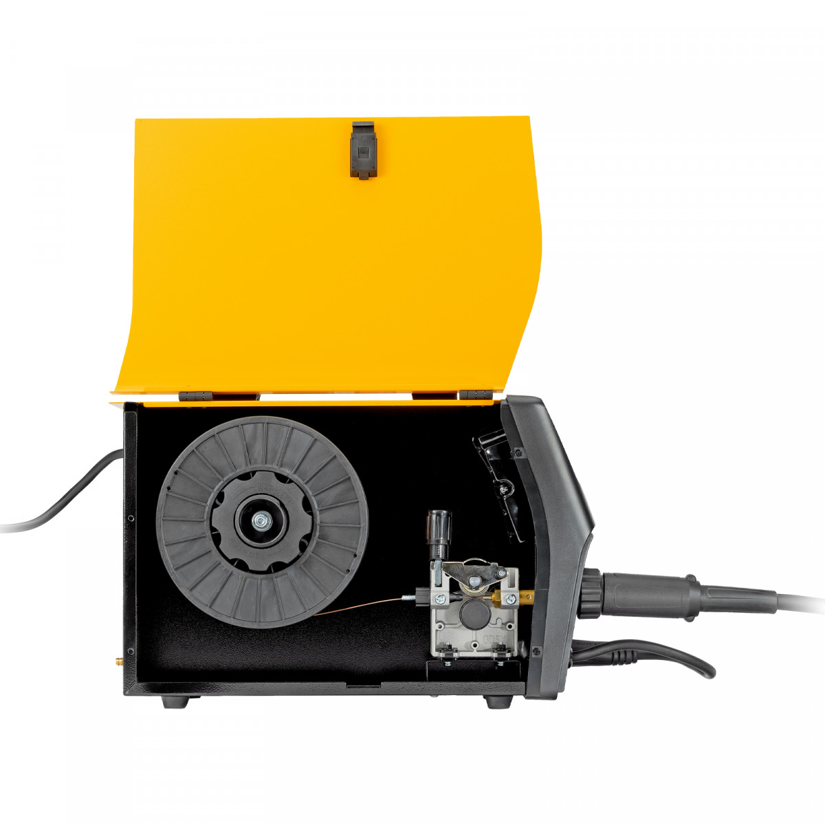 - Продуманная комплектация — аппарат поставляется с горелкой MIG, газовым шлангом и сварочными проводами (с электрододержателем и зажимом «земля»).