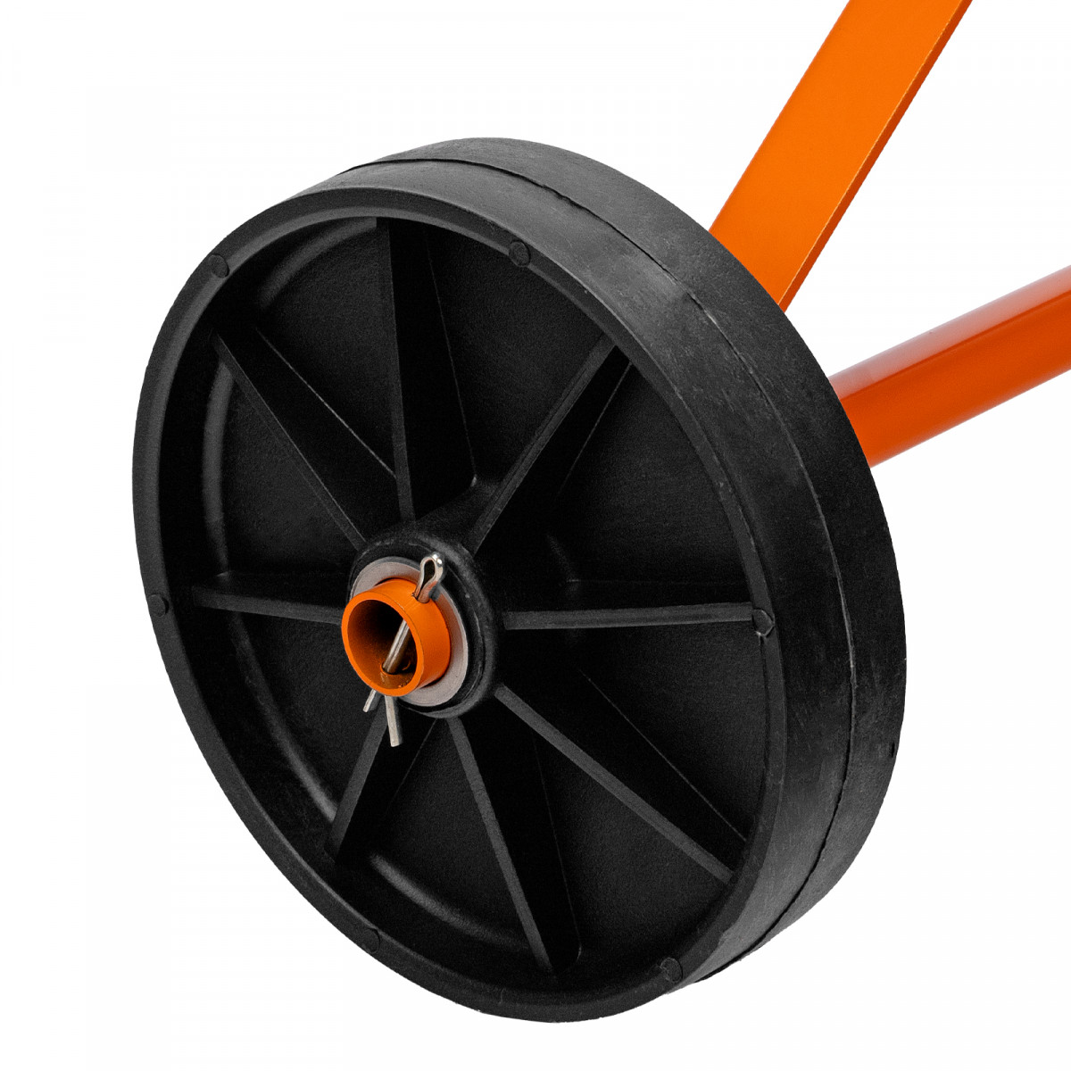 - Удобная загрузка и выгрузка смеси — барабан легко фиксируется в наклонном положении при помощи педали.