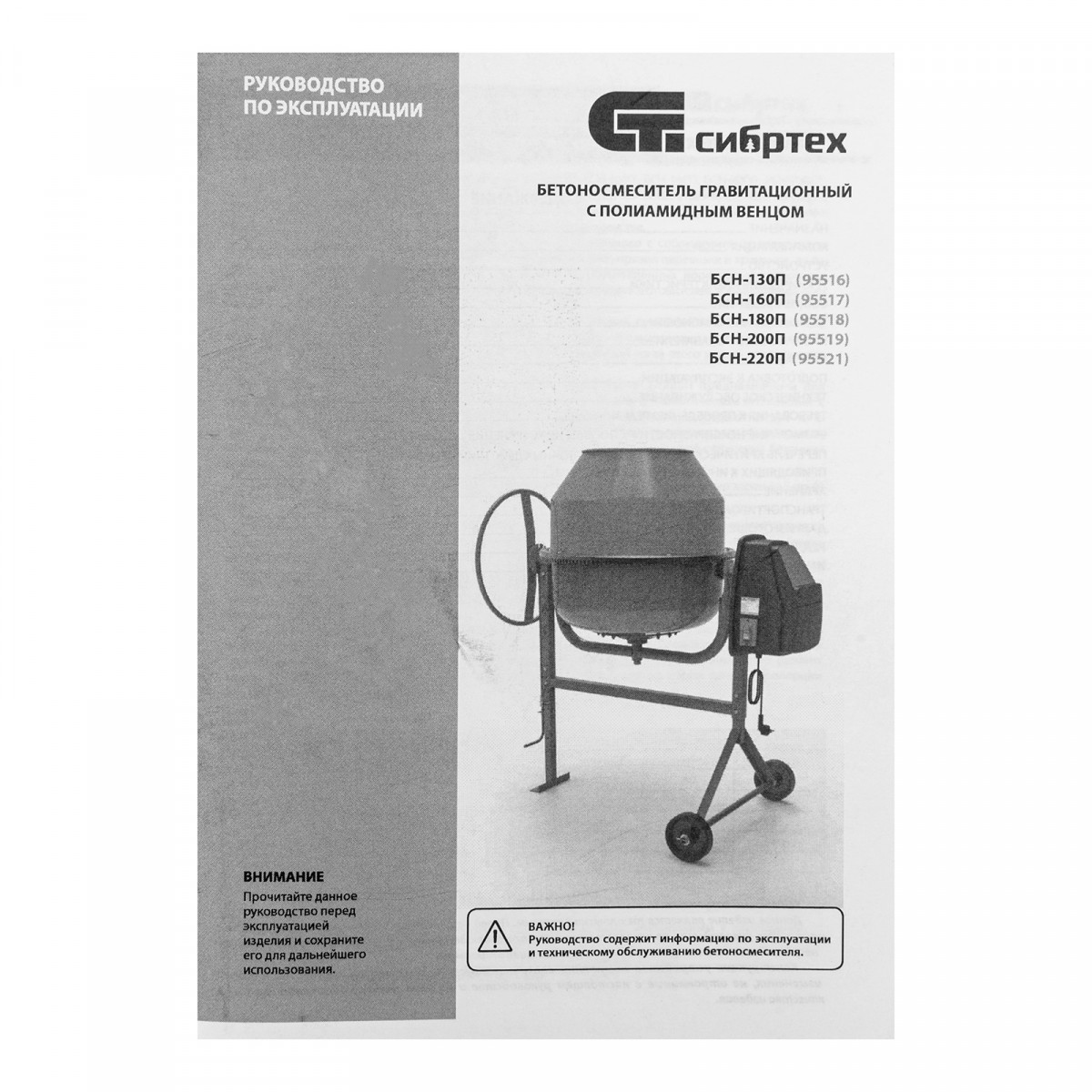 Бетоносмеситель БСН-160П, мощность 500 Вт, полиамидный венец Сибртех
