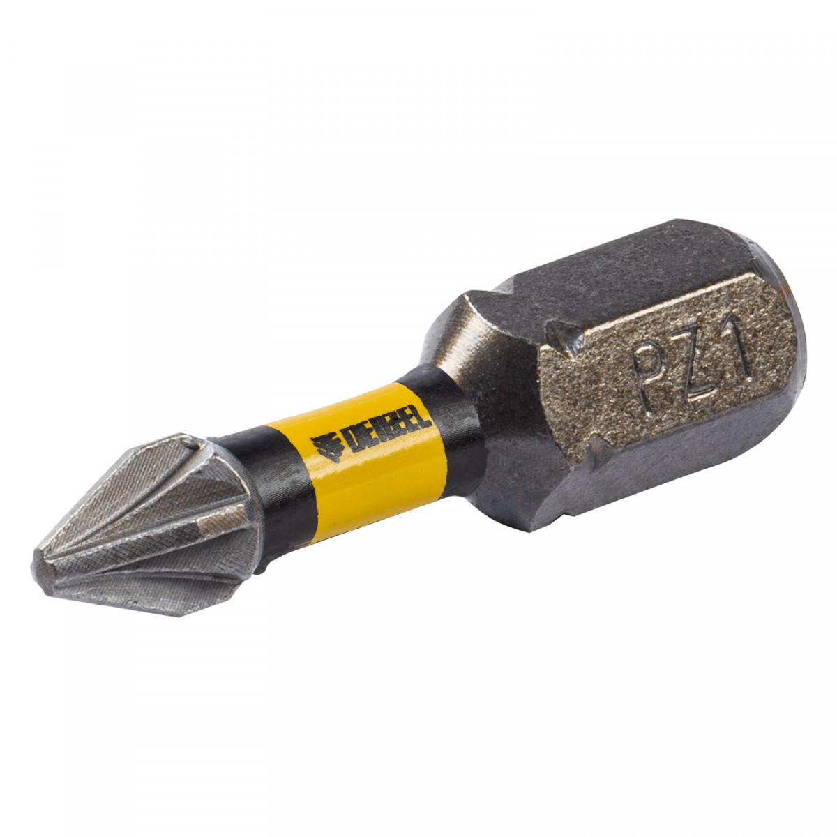 Бита IMPACT, PZ1x25 мм, лазерная обработка шлица, сталь S2, 10 шт., Е 6,3 Denzel