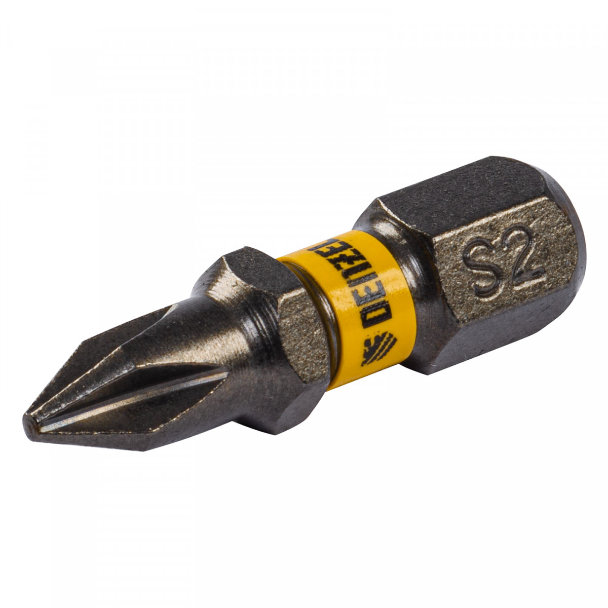 - Защита от подделок — цветное кольцо с логотипом ТМ Denzel на каждой бите подтверждает оригинальность товара.