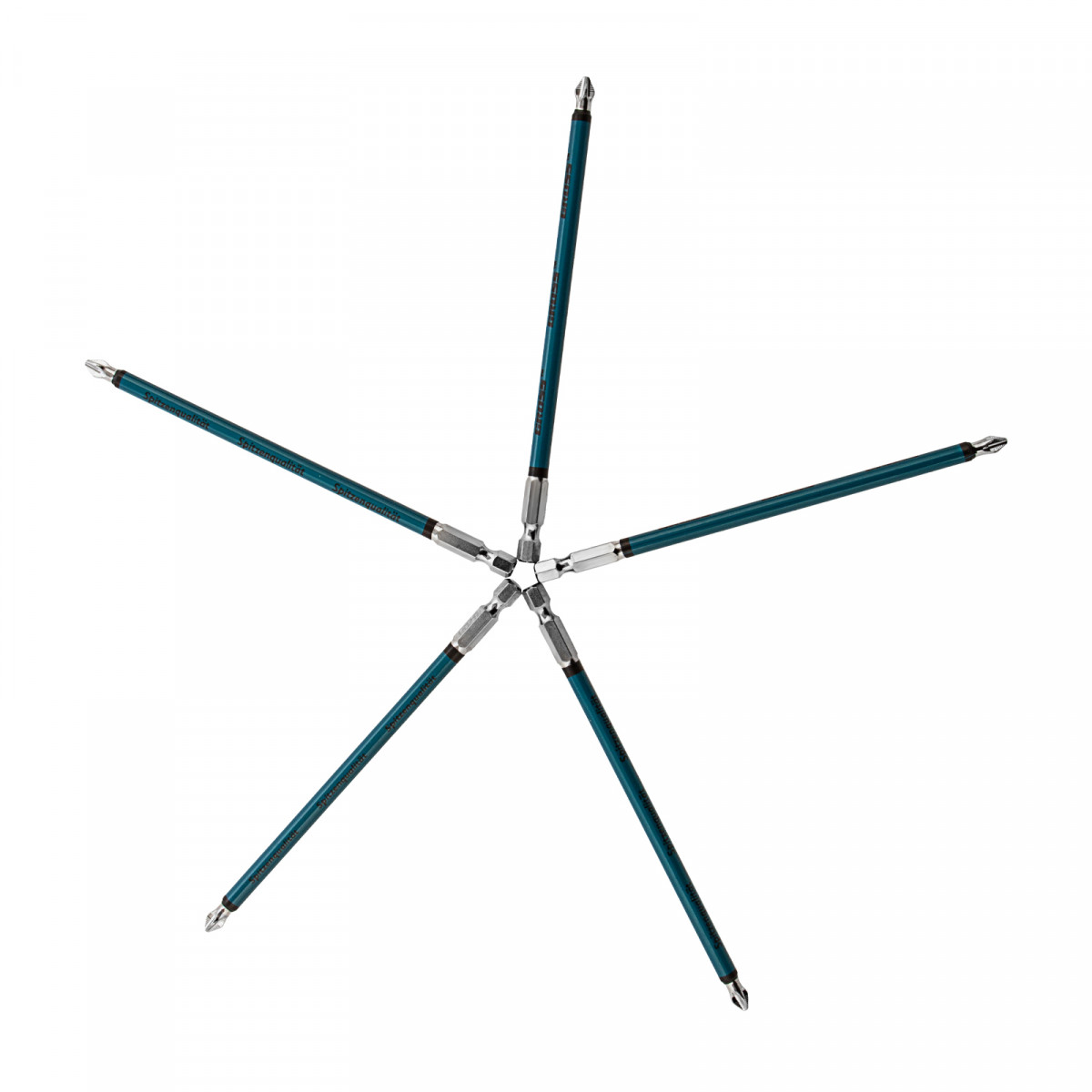 - Высокая результативность даже в ограниченном пространстве — благодаря удлиненному профилю 150 мм битами удобно работать в труднодоступных местах.