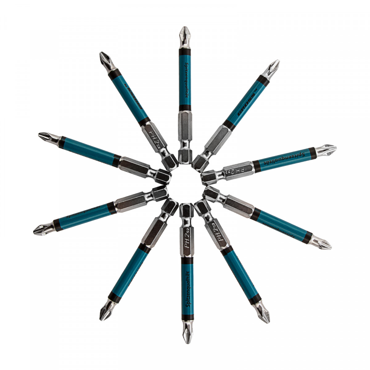- Износоустойчивость — биты изготовлены из японской легированной стали S2 повышенной прочности и закалены до твердости 54-58 HRC.