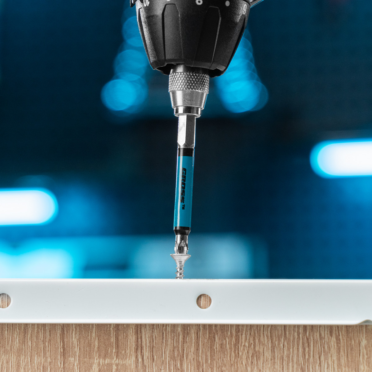 - Долговечность — насечки на шлице препятствуют проскальзыванию и «слизыванию» бит, дополнительно усиливают контроль при работе с саморезами по дереву.