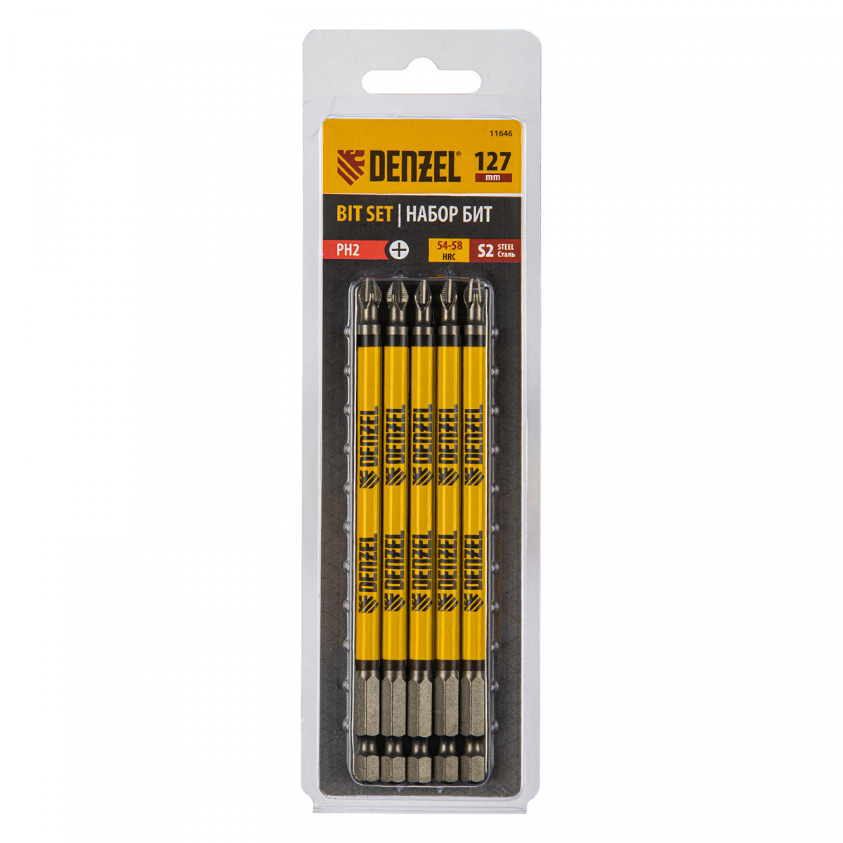 Бита PH2х127, сталь S2, цилиндр., 5шт. Е 6,3 Denzel