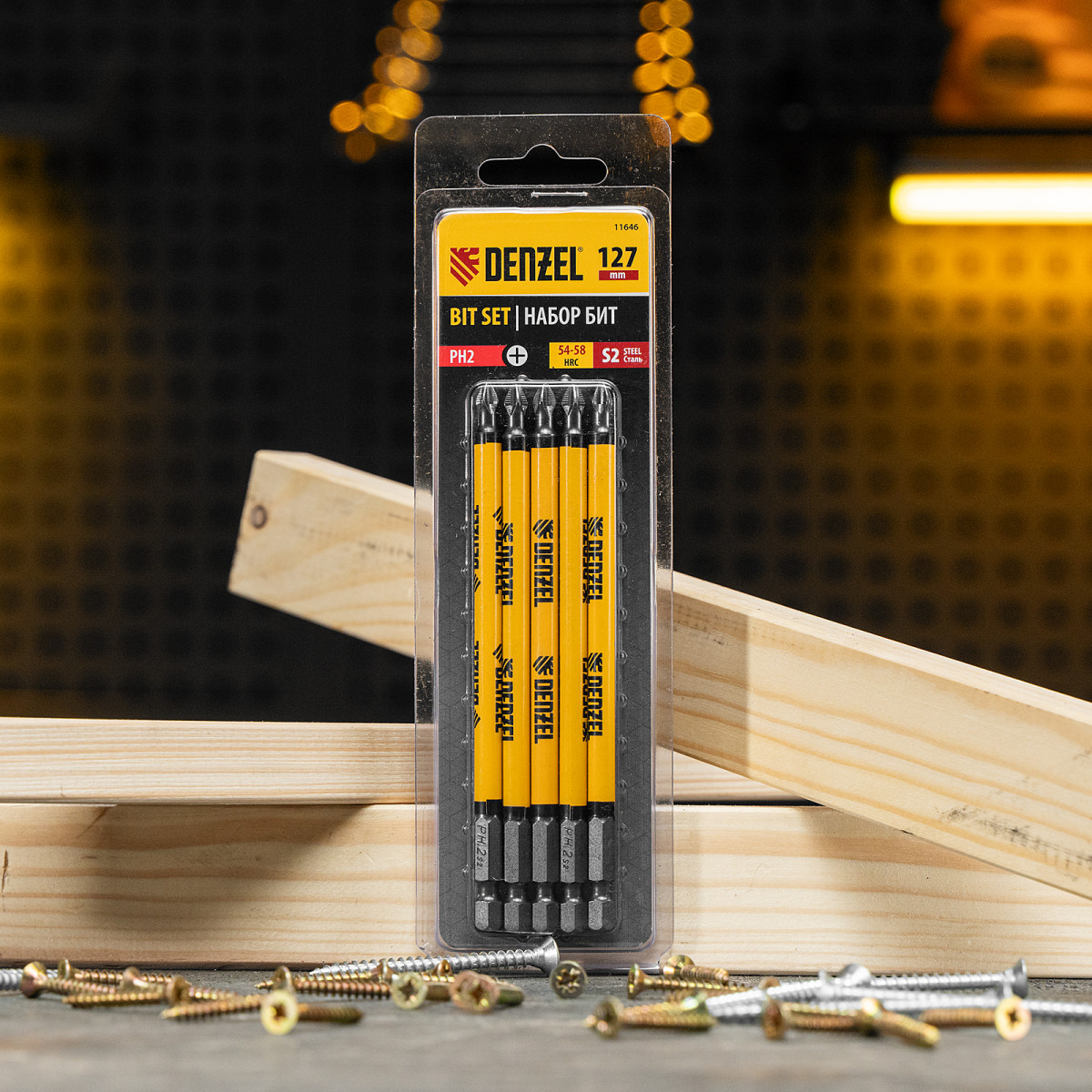 Набор односторонних бит PH2 x 127 мм Denzel 11646 — это 5 сменных насадок из стали S2 с крестообразными шлицами и шестигранными хвостовиками 1/4". Профессиональная оснастка рассчитана на работу с шуруповертом, обеспечивает быстрый монтаж и демонтаж резьбовых соединений с углублением PH2.