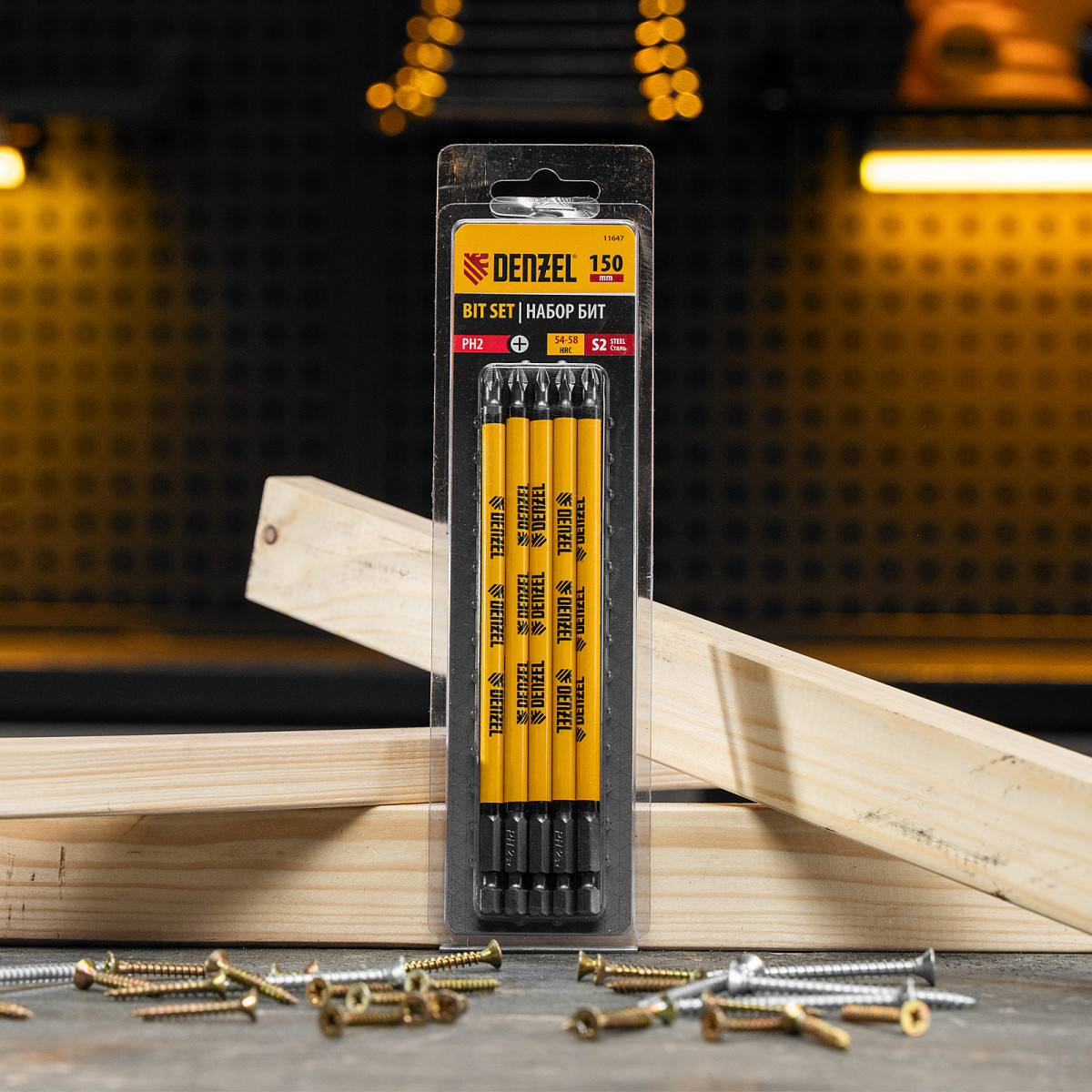 Бита PH2х150, сталь S2, цилиндр., 5шт. Е 6,3 Denzel