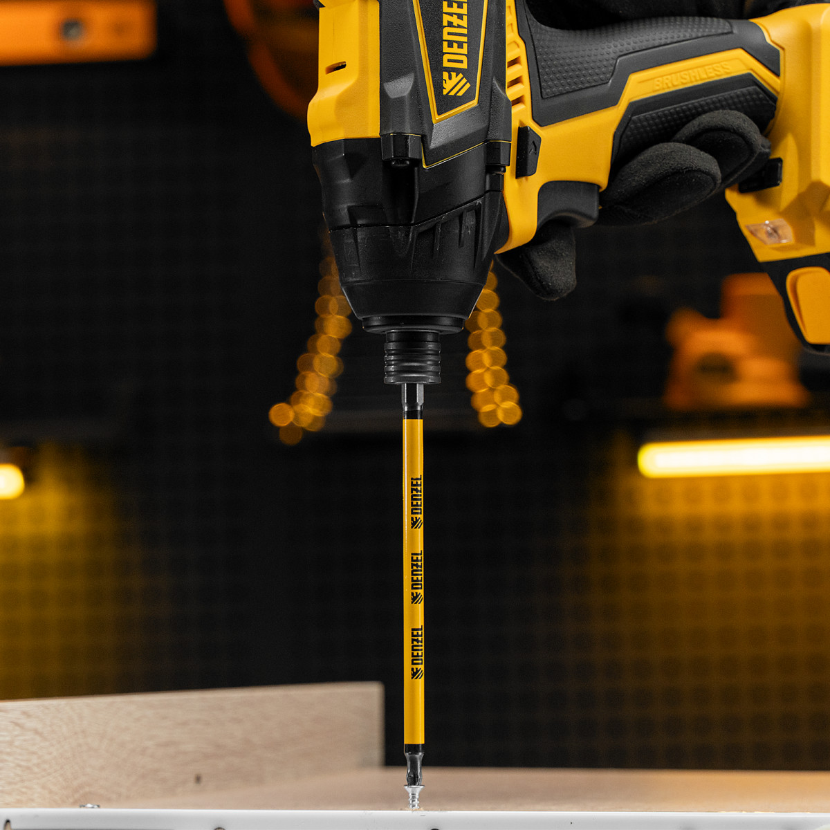 • Высокая результативность даже в ограниченном пространстве — благодаря удлиненному до 150 мм профилю битами удобно работать в труднодоступных местах.