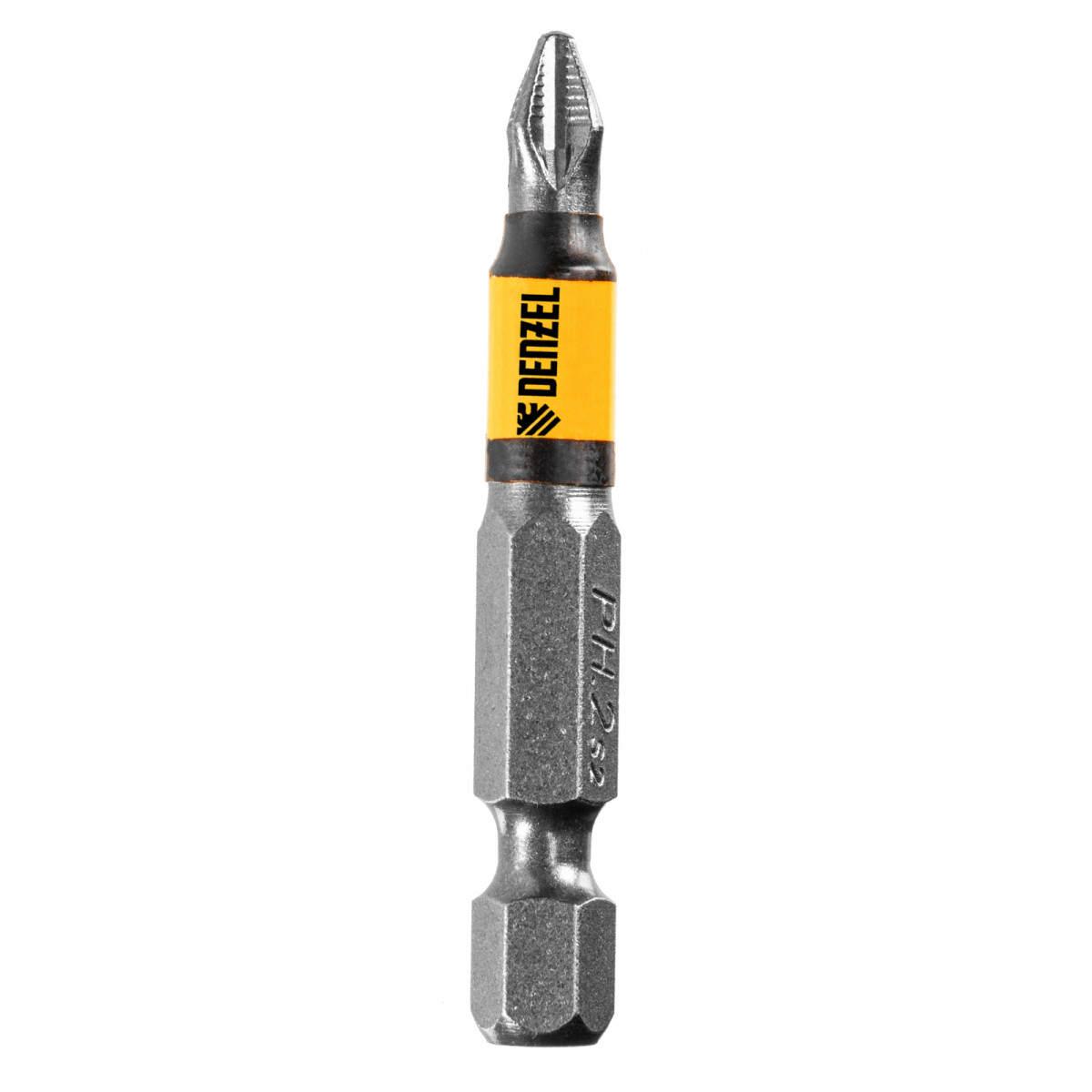 Бита PH2х50, сталь легированная S2, 10 шт., круглый профиль, отрывная упаковка, Е 6,3 Denzel