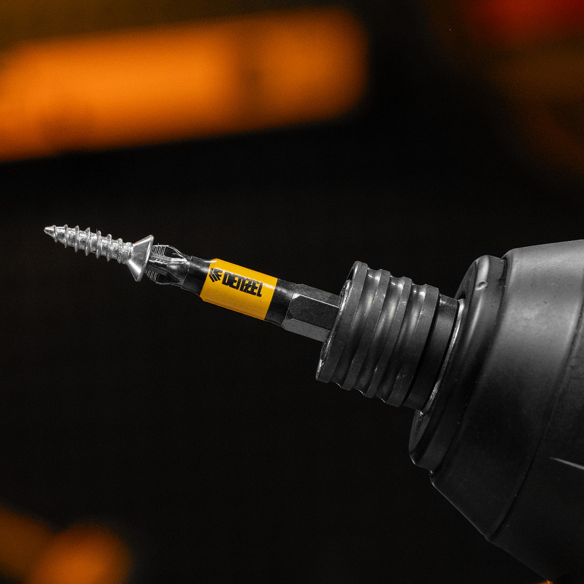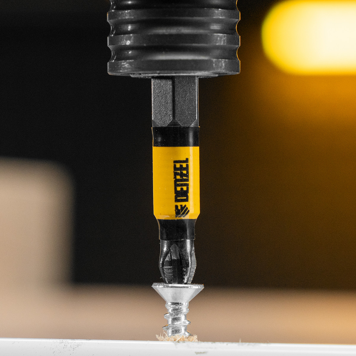 - Защита от подделок — цветное кольцо с логотипом ТМ Denzel на каждой бите подтверждает оригинальность товара.