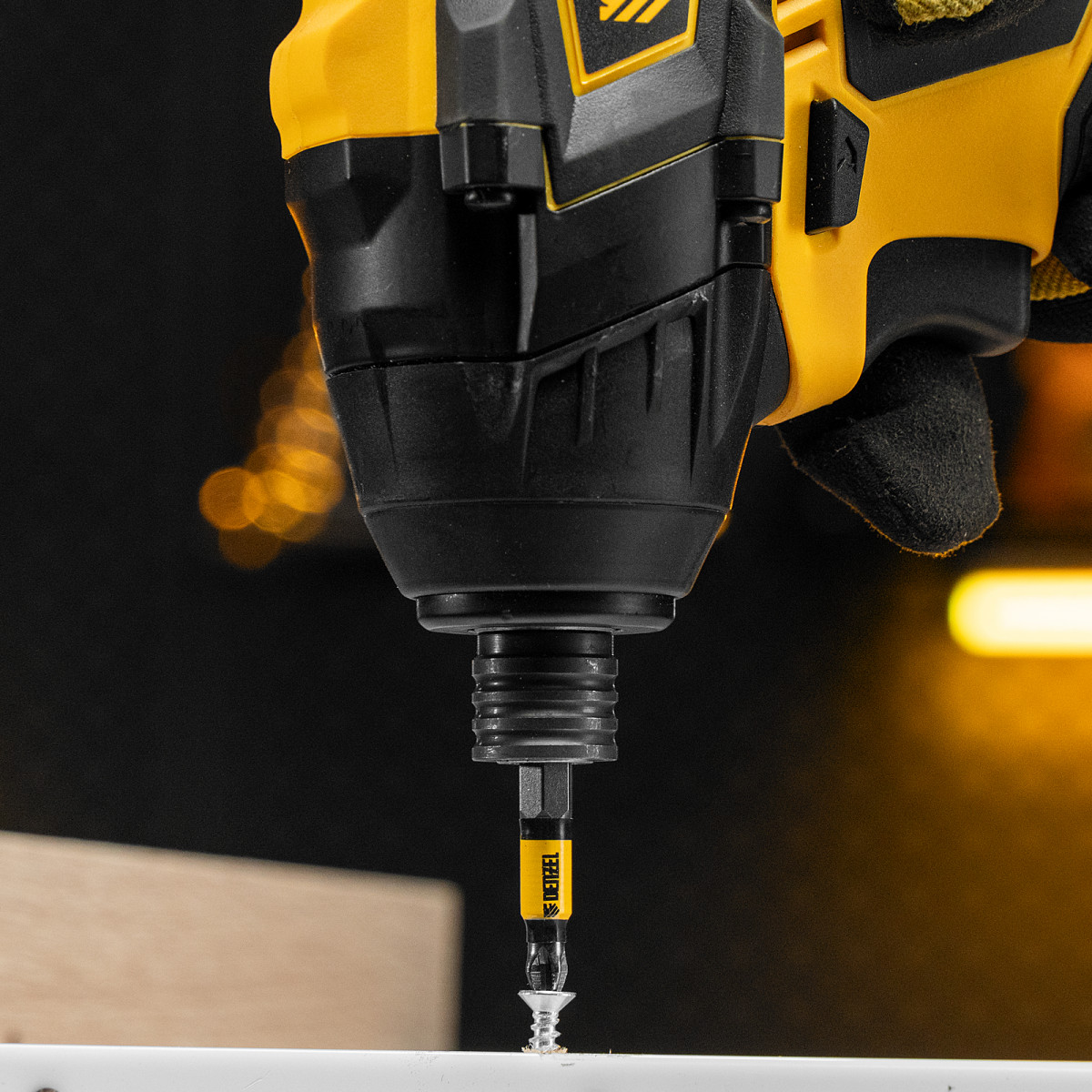 - Устойчивость к деформации при высоких нагрузках — биты изготовлены из японской легированной стали S2 и закалены до твердости 58 HRC.