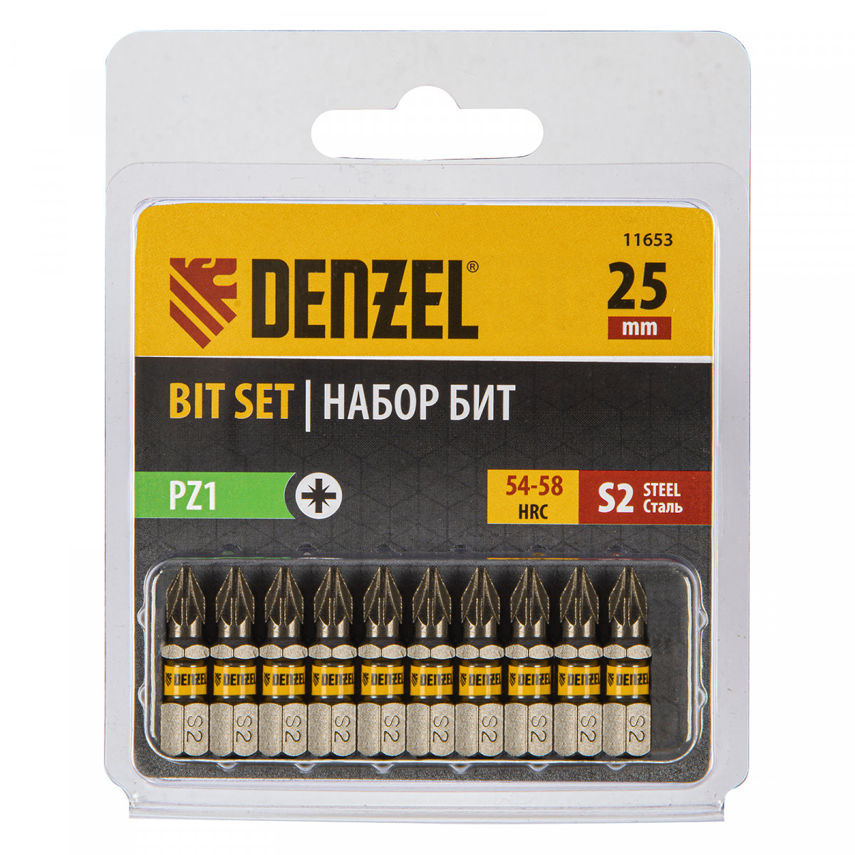 Бита PZ1х25, сталь S2, шестигранный профиль, 10 шт. Е 6,3 Denzel
