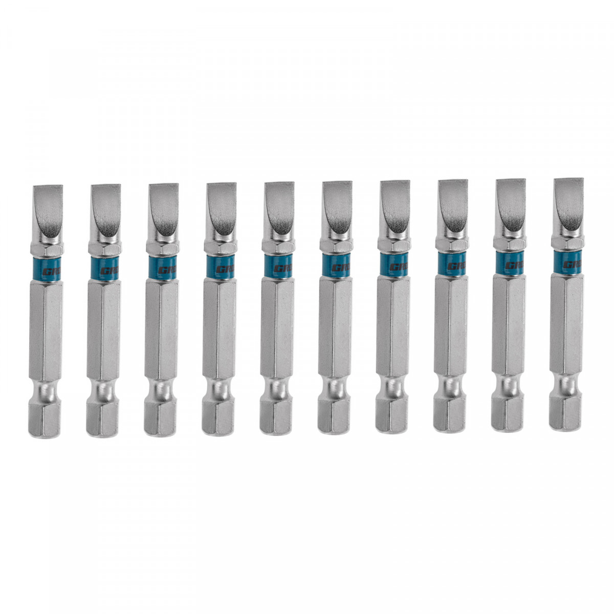Набор бит Gross 11326 типоразмера SL6,0 х 50 включает в себя 10 сменных насадок из стали S2 для шуруповертов и отверток-адаптеров с присоединительным шестигранником 1/4 дюйма. Биты со шлицами «минус» размером 6 мм применяются для монтажа и демонтажа винтов, саморезов и других резьбовых соединений.