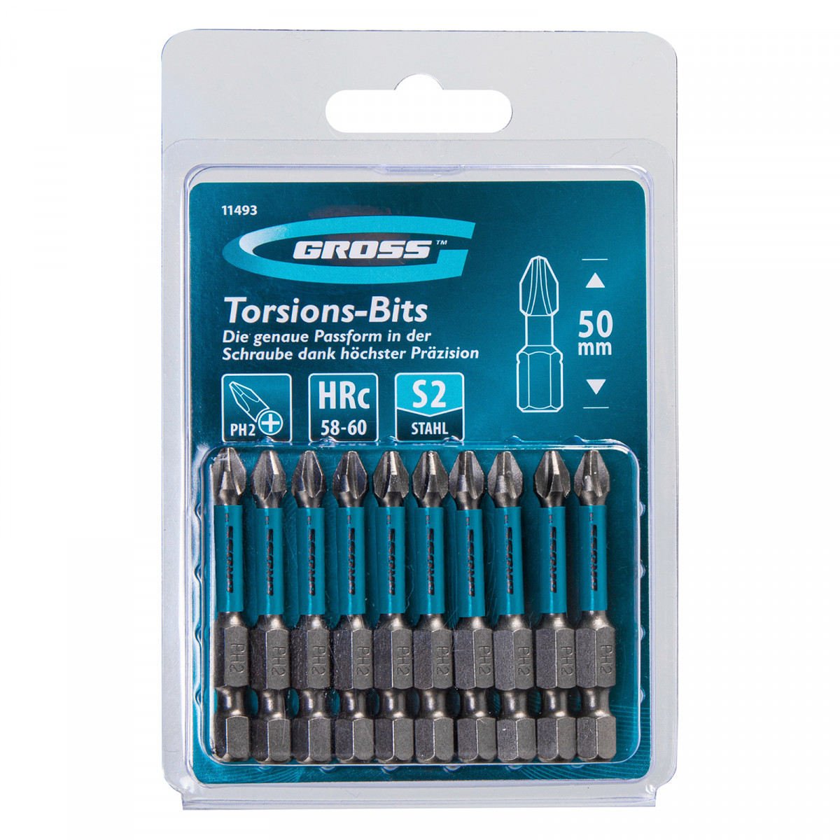 Бита торсионная PH2 x 50 мм, для ударных шуруповертов, 10 шт. Gross