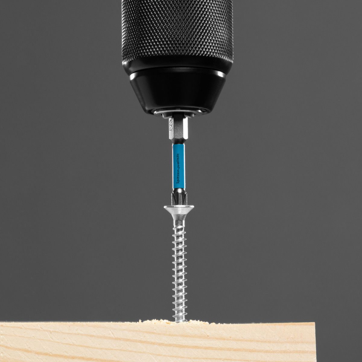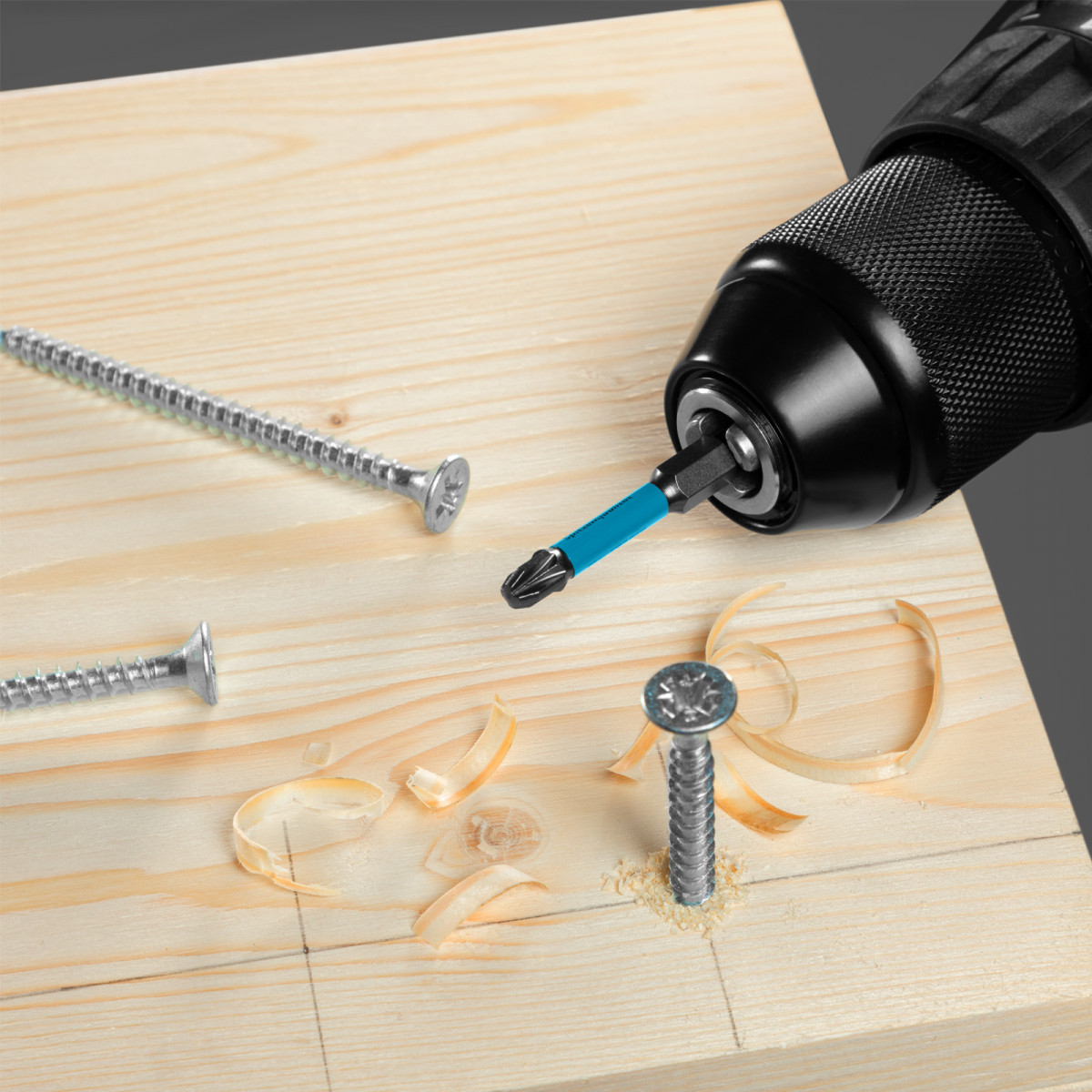 - Продуманная конструкция — торсионная зона позволяет работать ударным шуруповертом даже с особо твердыми поверхностями без риска поломки бит.