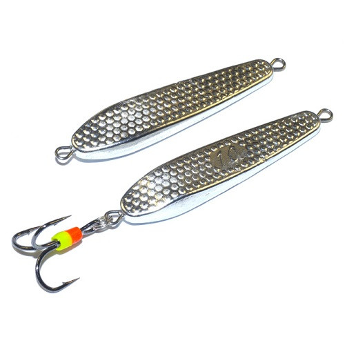 Блесны изготовлены из бинарного сплава серебра. Разработаны специально для ловли судака и крупного окуня со льда. Оснащены тройником с флуоресцентным кембрикоми серии ST-36 от фирмы "OWNER" № 8.