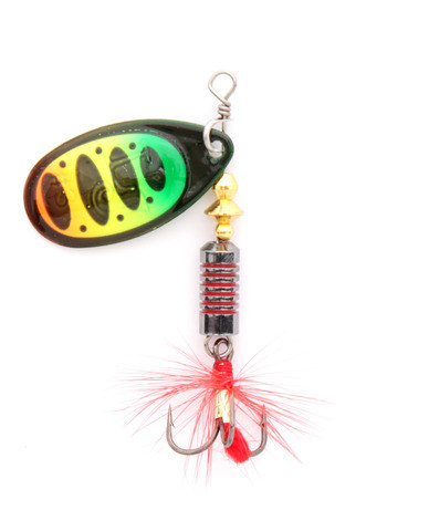 Bonnie Blade – новая серия вращающихся блесен Lucky John. В этих приманках используются современные конструктивные решения, которые обеспечивают надежную и стабильную игру блесен, и, что самое главное, делают их очень привлекательными для любой хищной рыбы. Главный элемент блесен – вращающийся лепесток. Он очень легок, сделан из латуни и обладает хорошими динамическими показателями при вращении в воде, что позволяет делать проводку приманки на минимальной скорости. Лепесток «заводится» сразу, как только блесна начинает движение. Лепестки окрашены с двух сторон. С какой бы стороны хищная рыба не смотрела на приманку, ее расцветка остается одинаковой и привлекательной, что повышает интерес к блесне и, в итоге, приводит к результативной атаке. Немаловажная деталь – сердечник приманок, от которого зависит вес и дальнобойность приманки, а также ее устойчивость в воде. На всех тройниках связана яркая мушка, основное предназначение которой – снять последние сомнения у приготовившейся к атаке хищной рыбы.