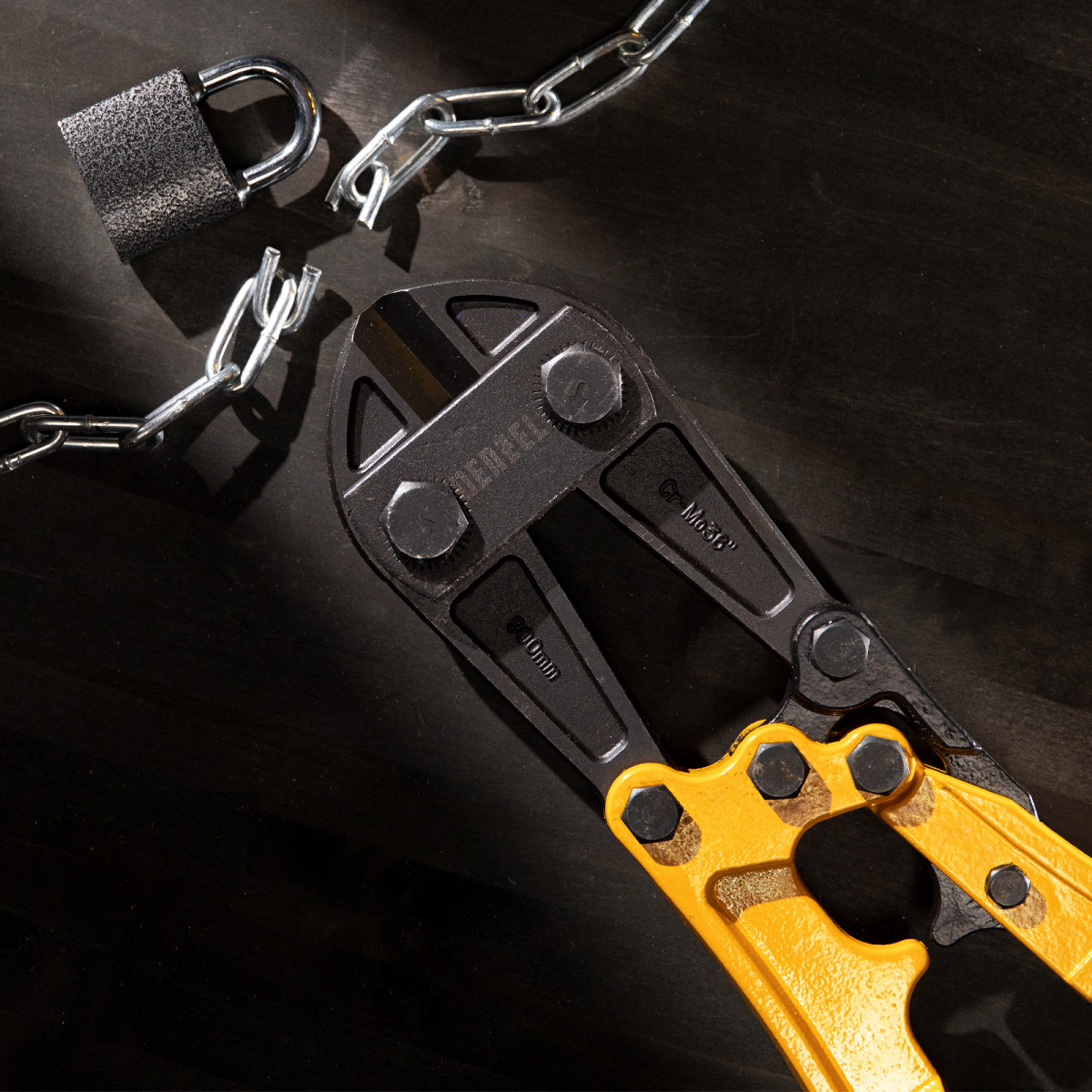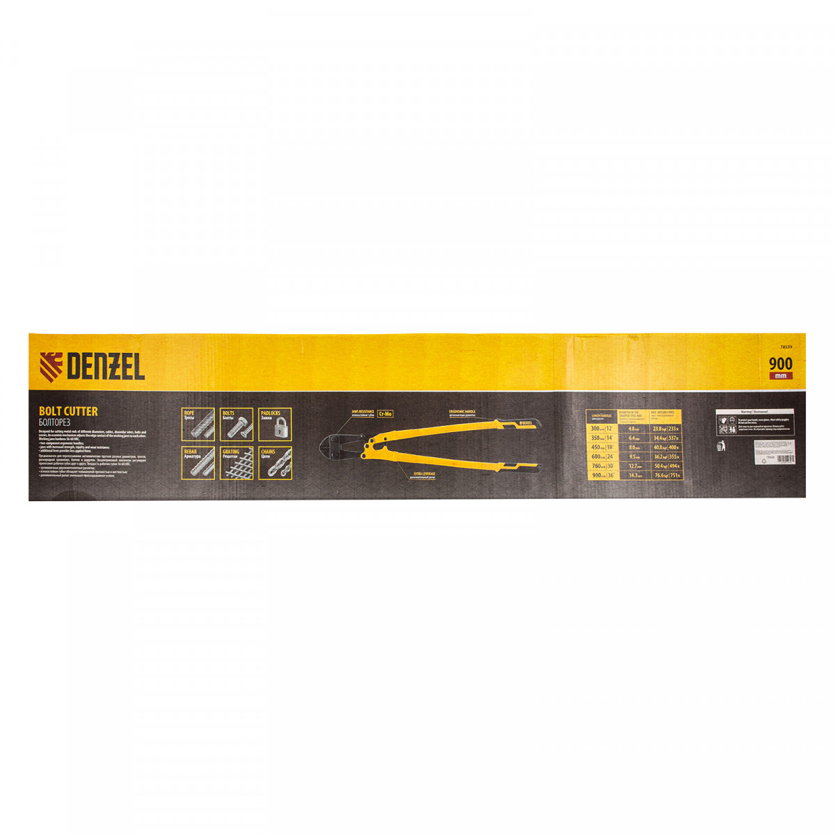 Болторез Denzel 78539 длиной 900 мм (36 дюймов), из стали Cr-Mo, предназначен для перекусывания стальных прутков диаметром 14,3 мм, болтов и шурупов, тросов, разнородной проволоки.