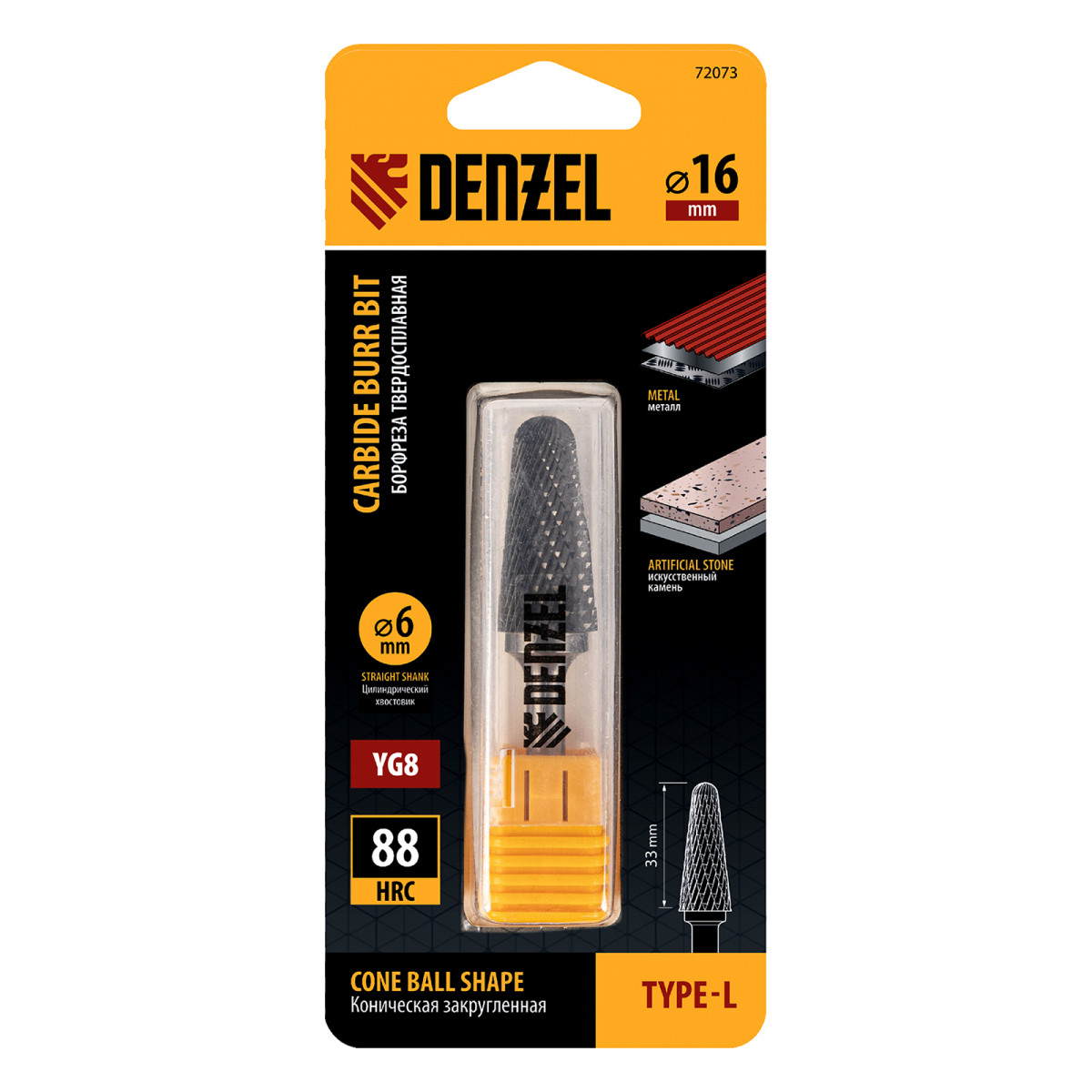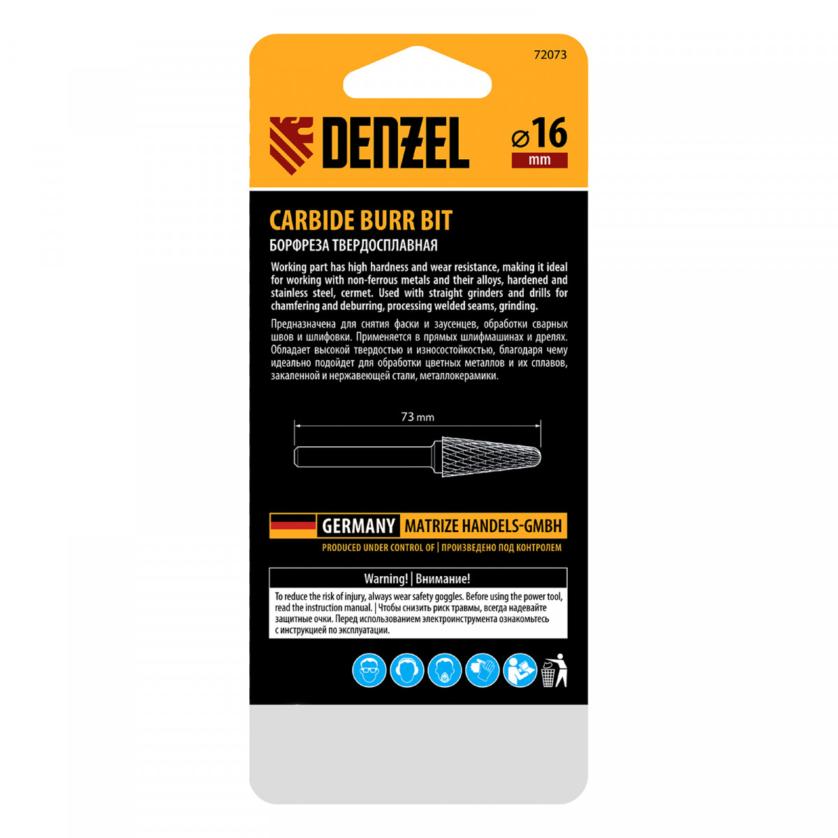 Борфреза по металлу твердосплавная, коническая закругленная, тип-L, 16 мм Denzel