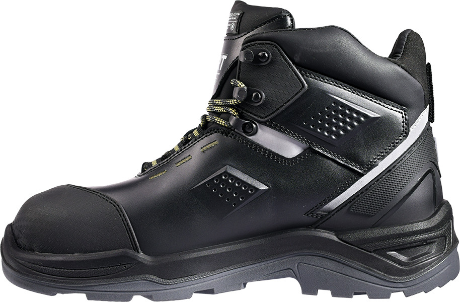 Верх: кожа натуральная гладкая гидрофобная 1,8-2,0 мм Мягкий кант и язычок: микрофибра Подкладка: шерстянной мех, цвет тёмно-серый Подносок: композитный (200 Дж) Основная стелька: антистатическая, антипрокольная, неметаллическая (1200H) Вкладная стелька: материал ЭВА+шерстянной мех+антистатическая нить Фурнитура: пластиковая Накладки ТПУ: пятка, носок, надблочник Cветовозвращающие элементы, тиснение Подошва: ПУ/ТПУ Высота берец: 145(+/-5) мм.