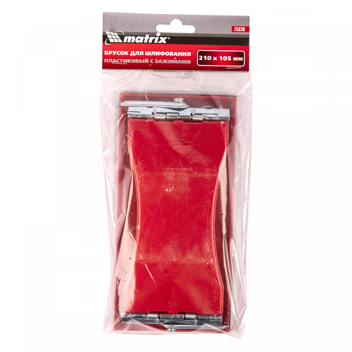 Брусок для шлифования, 210 х 105 мм, пластиковый с зажимами Matrix