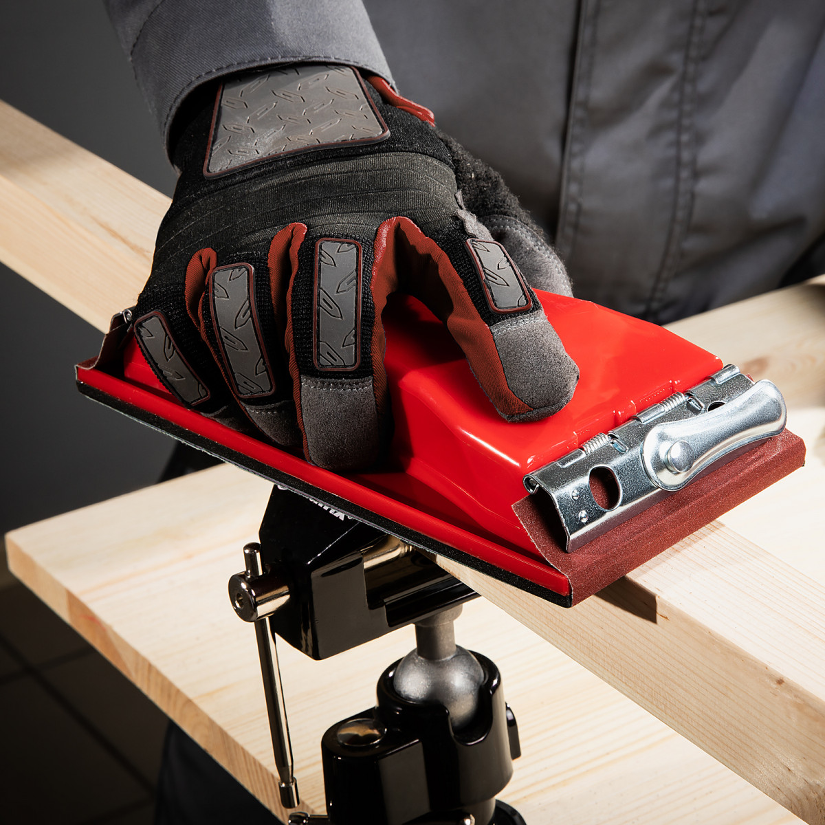 - Простая подготовка к работе — быстрозажимной механизм позволяет надежно зафиксировать шлифовальный материал.