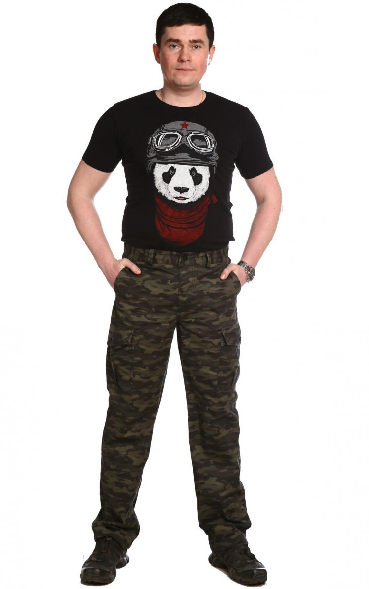 Брюки оформлены шестью карманами различных размеров и функциональности: два прорезных на бедрах, два боковых карго кармана с клапанами, так же как и задние, закрываются на кнопки. На поясе брюк имеются шлевки под ремень, ширинка на молнии с кнопкой.