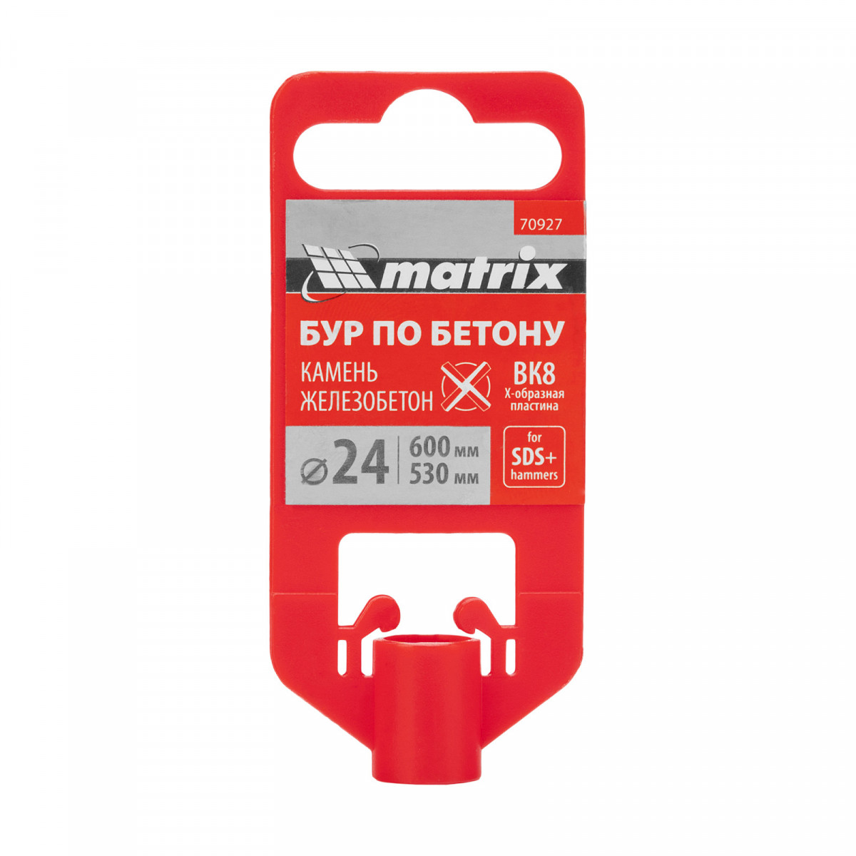 Бур по бетону Matrix 70927 длиной 600 мм, с хвостовиком SDS-plus и крестовой пластиной, предназначен для получения отверстий диаметром 24 мм в бетоне, камне и кирпиче. Крестовая пластина обеспечивает эффективную работу с твердыми материалами, в том числе армированным бетоном. Бур устанавливается в патрон перфоратора и используется во время проведения строительных работ.
