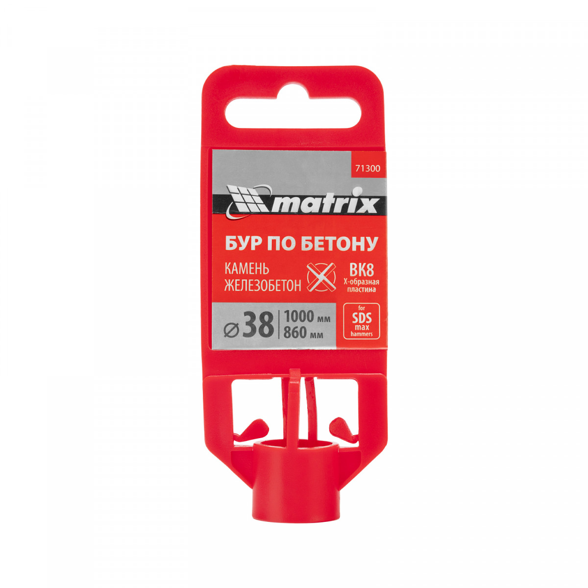 Бур по бетону Matrix 71300 длиной 1000 мм, с хвостовиком SDS MAX и крестовой пластиной, — оснастка для перфораторов высокой мощности, предназначенная для получения отверстий диаметром 38 мм в стенах, полах, перекрытиях. Крестовая пластина в сочетании с усиленной системой крепления SDS MAX позволяет успешно работать с камнем, кирпичом и бетоном, в том числе армированным. Бур используется во время проведения строительных работ, незаменим для прокладки коммуникаций: газо- и водопроводов, электросетей и т.д.