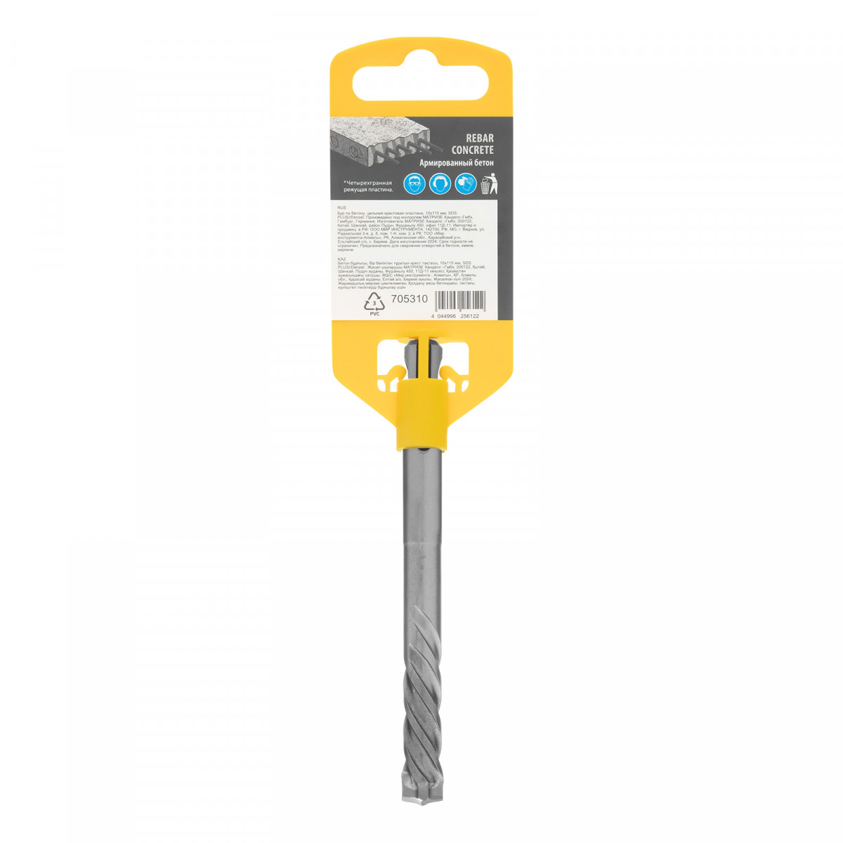 Бур по бетону Denzel 705310 длиной 115 мм, с цельной крестовой пластиной и хвостовиком SDS-plus — оснастка для перфораторов, предназначенная для получения отверстий диаметром 10 мм в бетоне, кирпиче, камне. Благодаря цельному карбидному наконечнику с 4 режущими кромками бур оптимален для работы с материалами высокой твердости, в том числе с армированным бетоном. Оснастка превосходит большинство аналогов по своим рабочим качествам и подходит для профессионального использования.