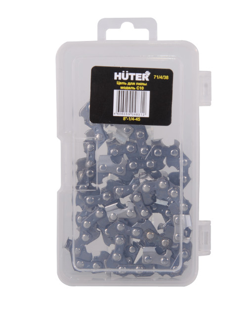 Цепь Huter изготовлена из высококачественной стали и имеет хромированные каленые зубцы, которые обеспечивают качественный рез, а также продлевают срок службы цепи.