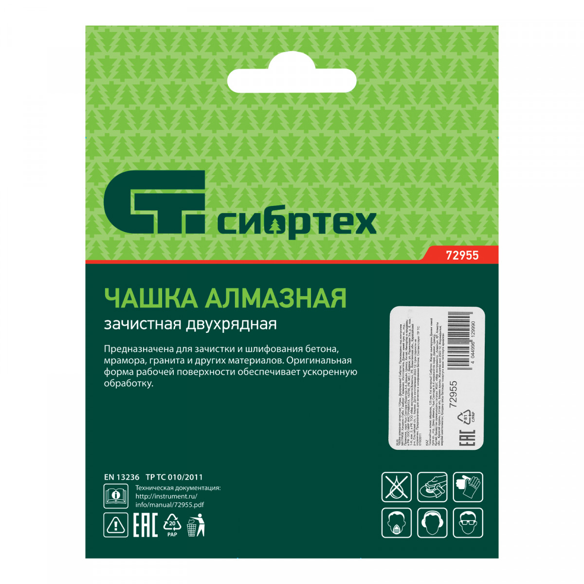 Чашка алмазная зачистная 125 мм, двухрядная Сибртех