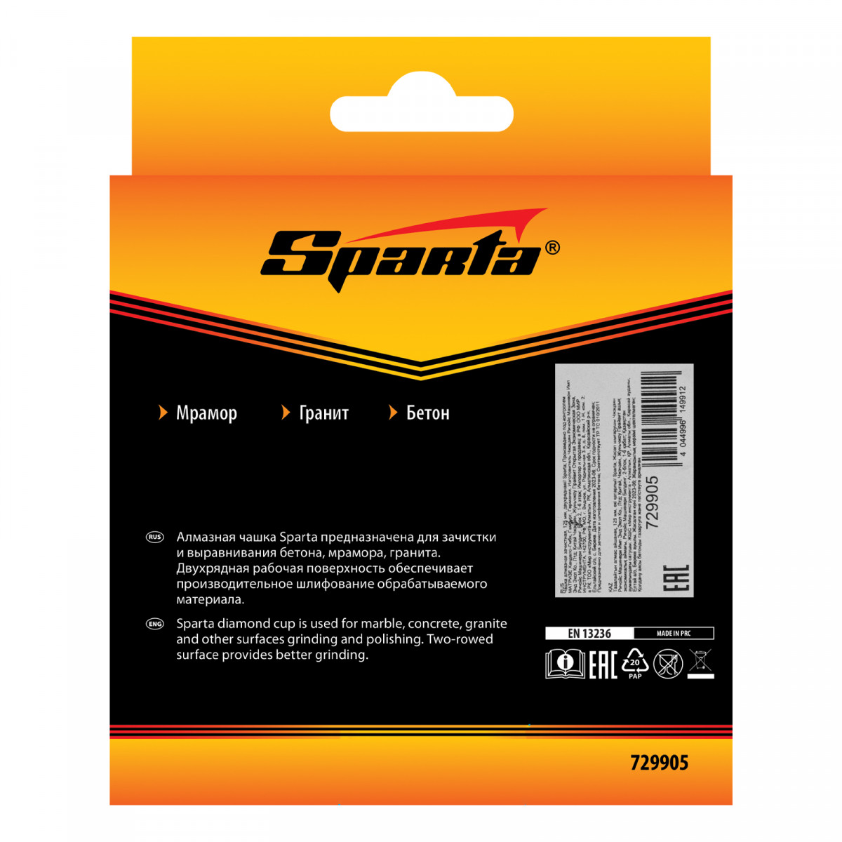 Чашка алмазная зачистная, 125 мм, двухрядная Sparta