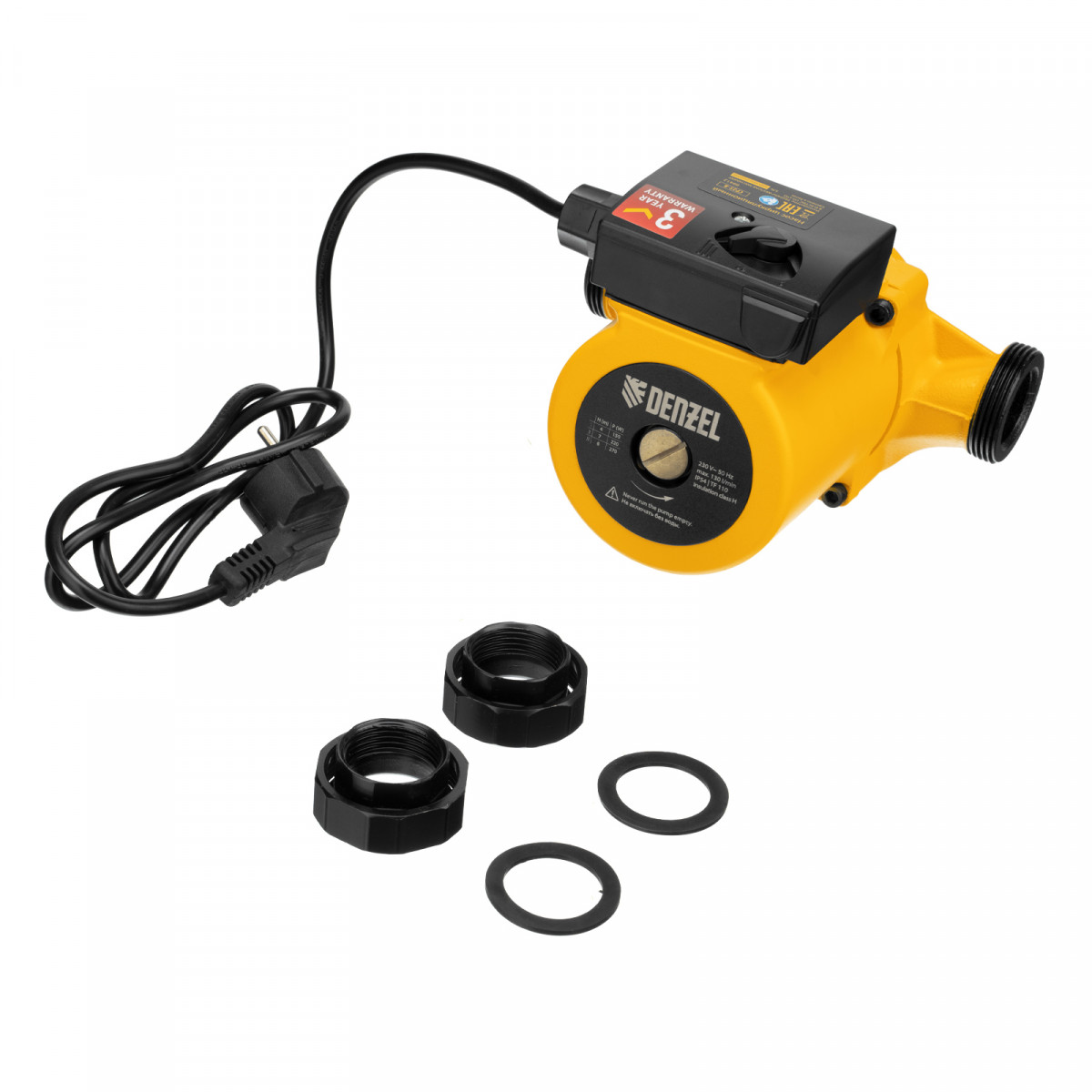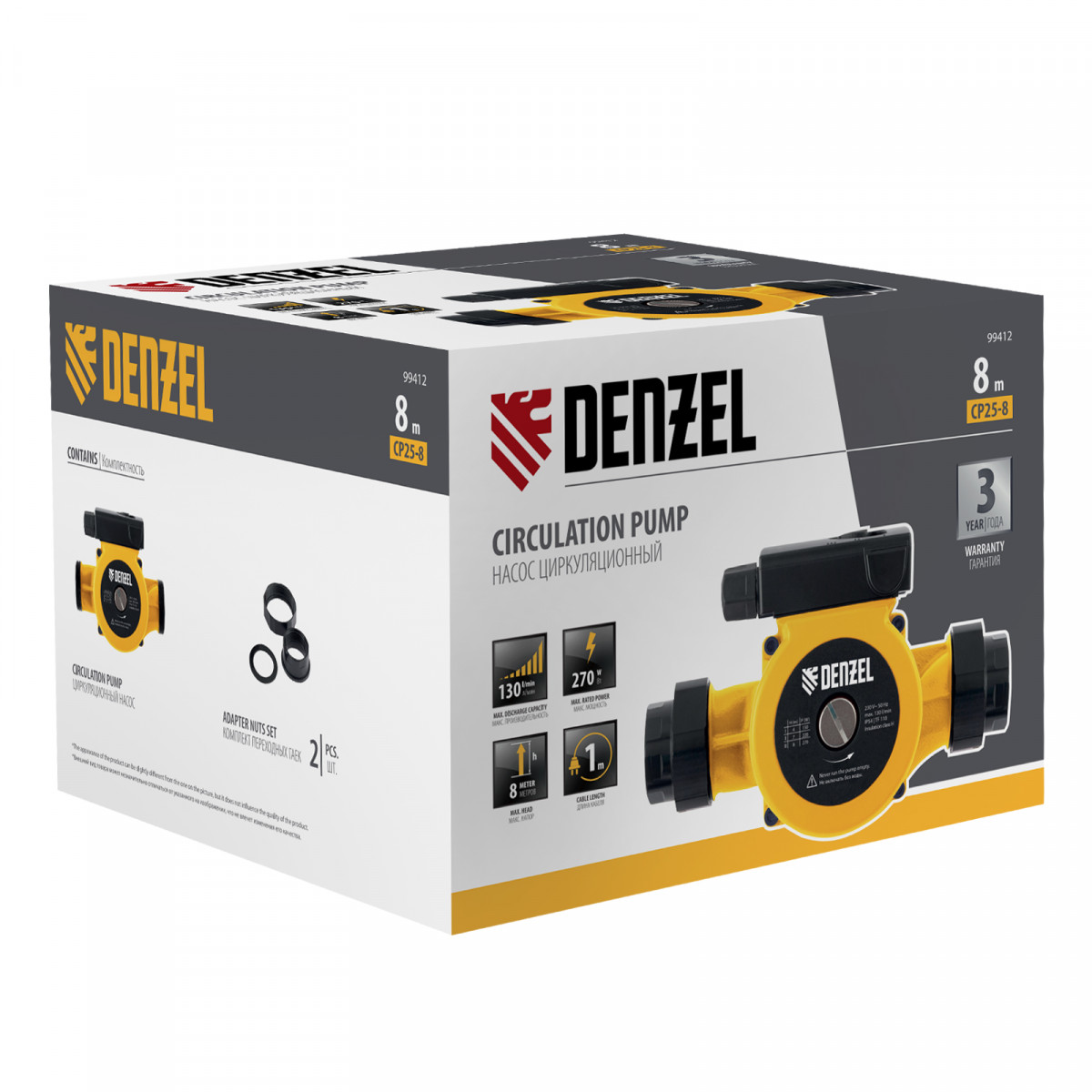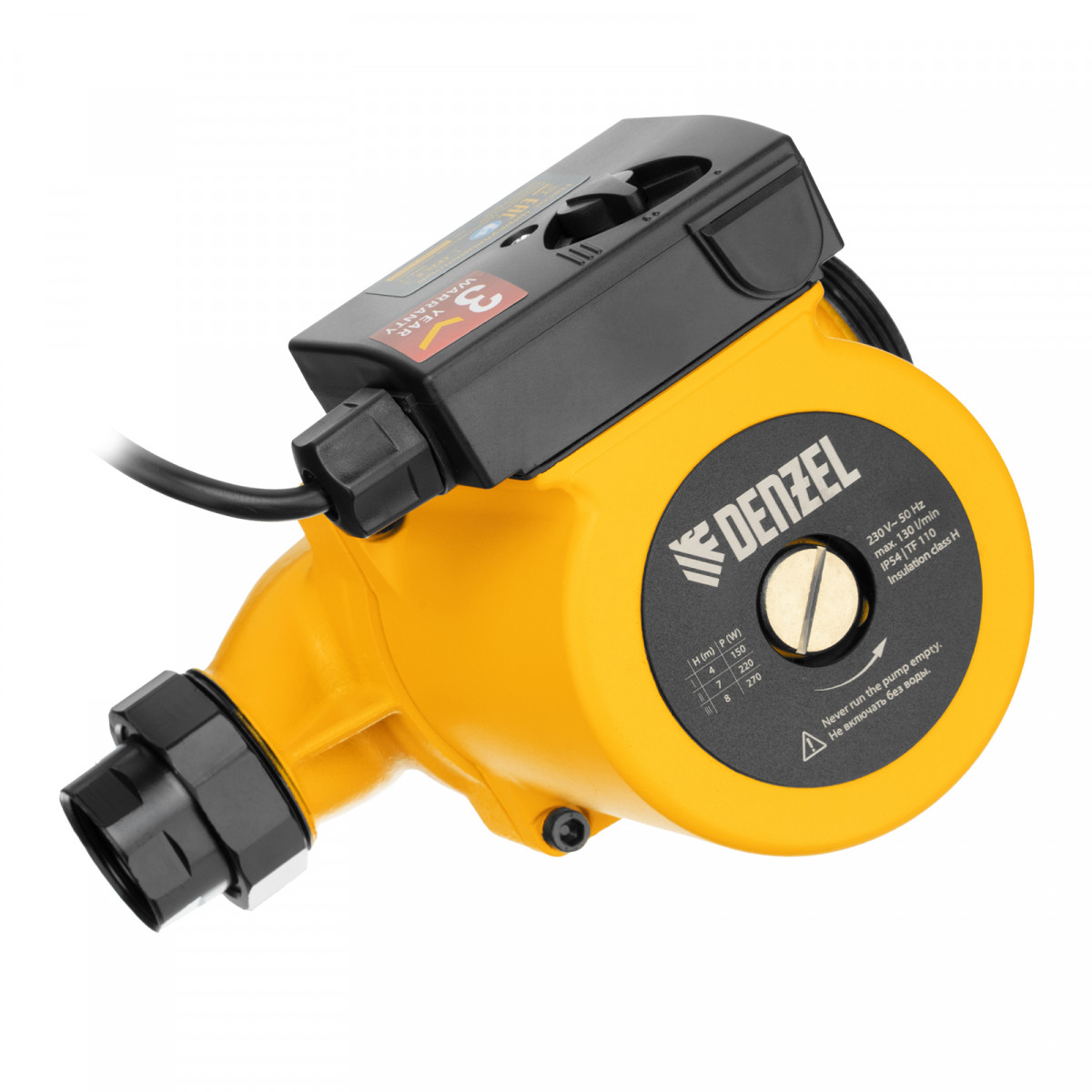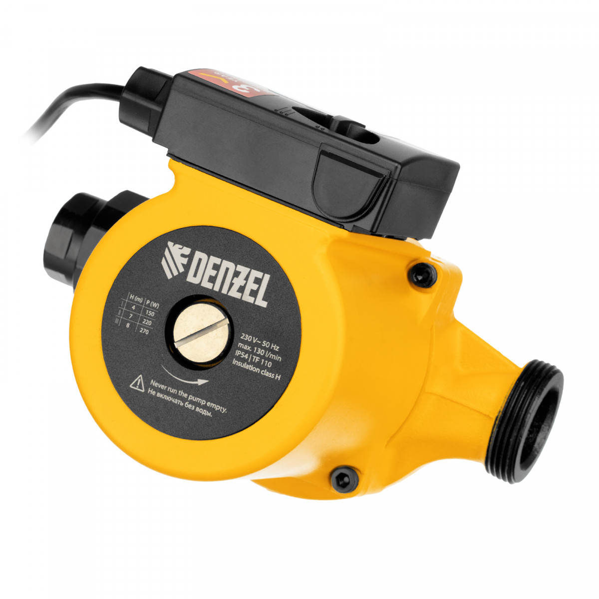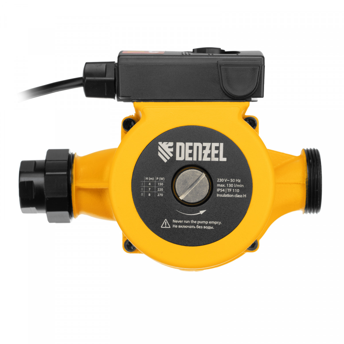 Циркуляционный насос CP25-8, напор 8 м, 130 л/мин, 1 м кабель, монт. длина 180 мм Denzel