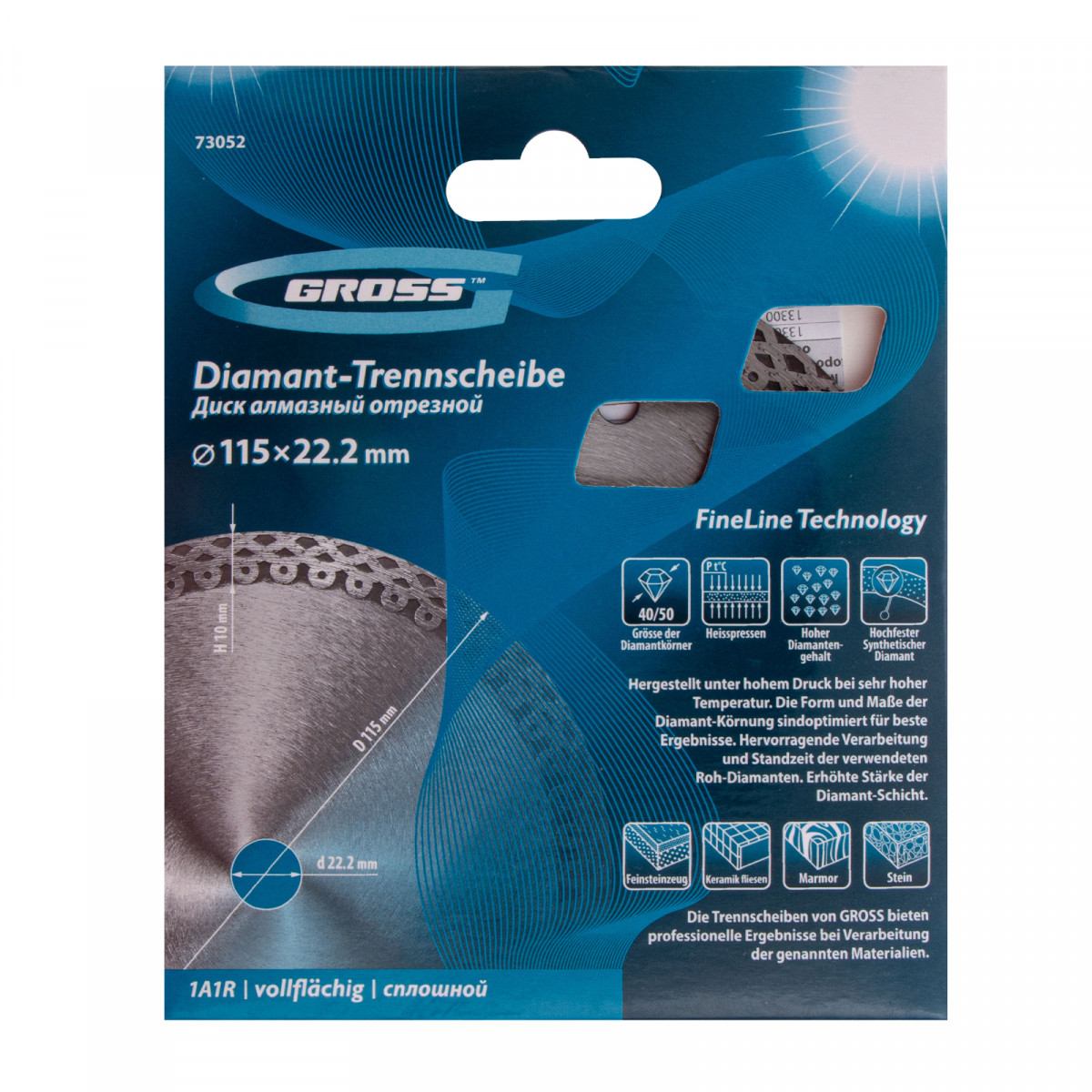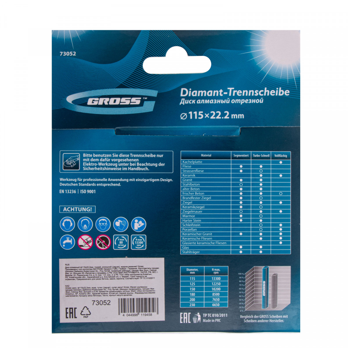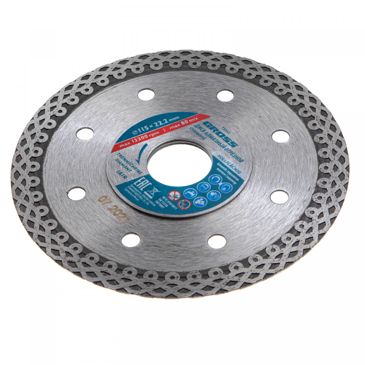 Диск алмазный, 115 х 22.2 мм, тонкий, сплошной (Jaguar) мокрая резка Gross