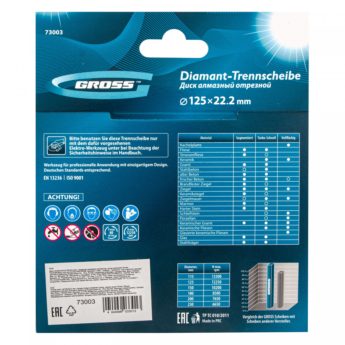 Диск алмазный, 125 х 22.2 мм, лазерная приварка сегментов, сухая резка Gross