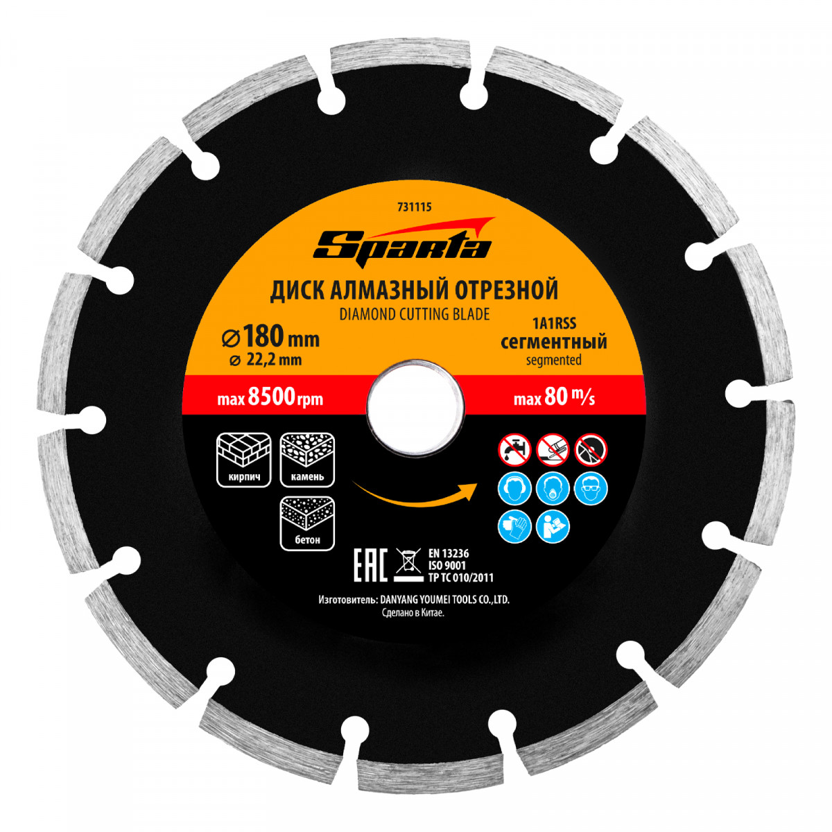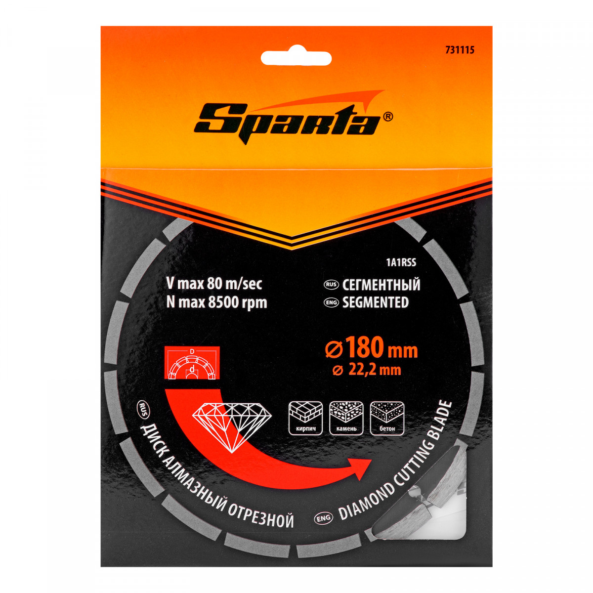 Сегментный отрезной алмазный диск Sparta 731115 диаметром 180 х 22,2 мм применяется для сухой резки бетона, камня, шлакоблока, тротуарной плитки и кирпича. Устанавливается на углошлифовальную машину с посадочным диаметром 22,2 мм. Подходит для интенсивной работы, оптимален для решения бытовых задач.