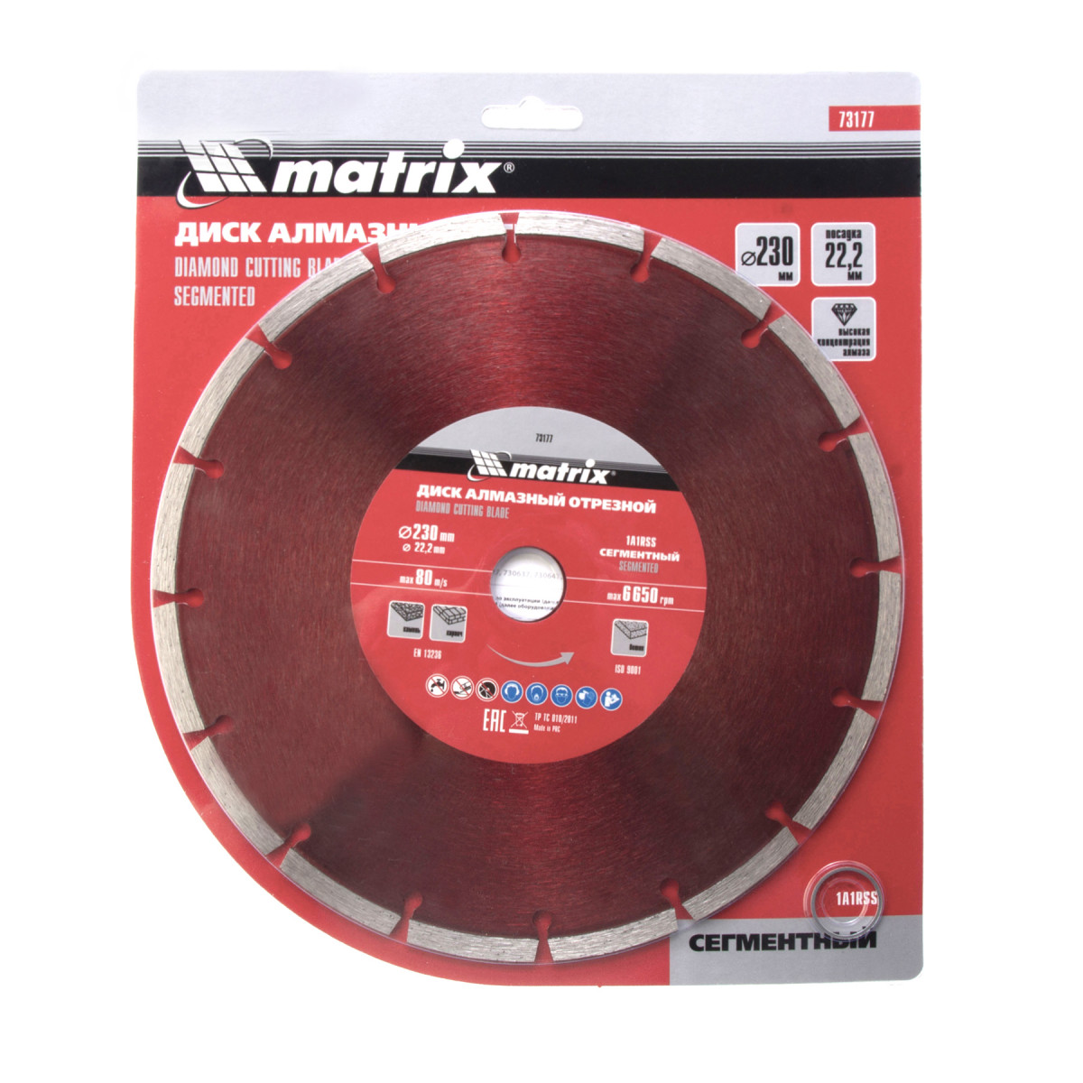 Алмазный отрезной сегментный диск Matrix 73177 диаметром 230 х 22,2 мм предназначен для сухой резки натурального и искусственного камня, кирпича, свежего и твердого бетона. Применяется с углошлифовальными машинами соответствующего типоразмера. Благодаря высокой скорости реза диск позволяет выполнять работы большого объема. Он пригодится на небольших строительных площадках и будет идеальным помощником при решении бытовых задач.