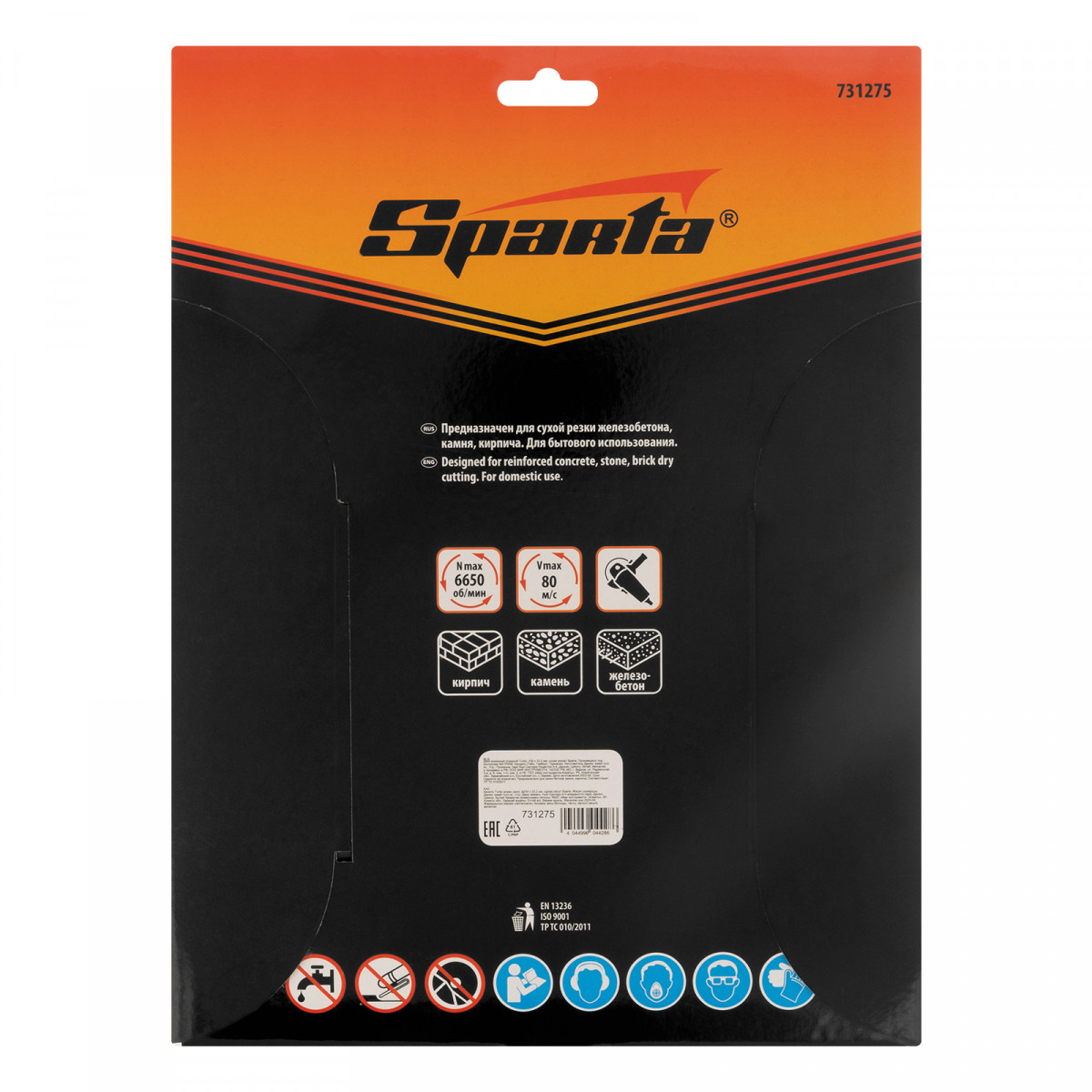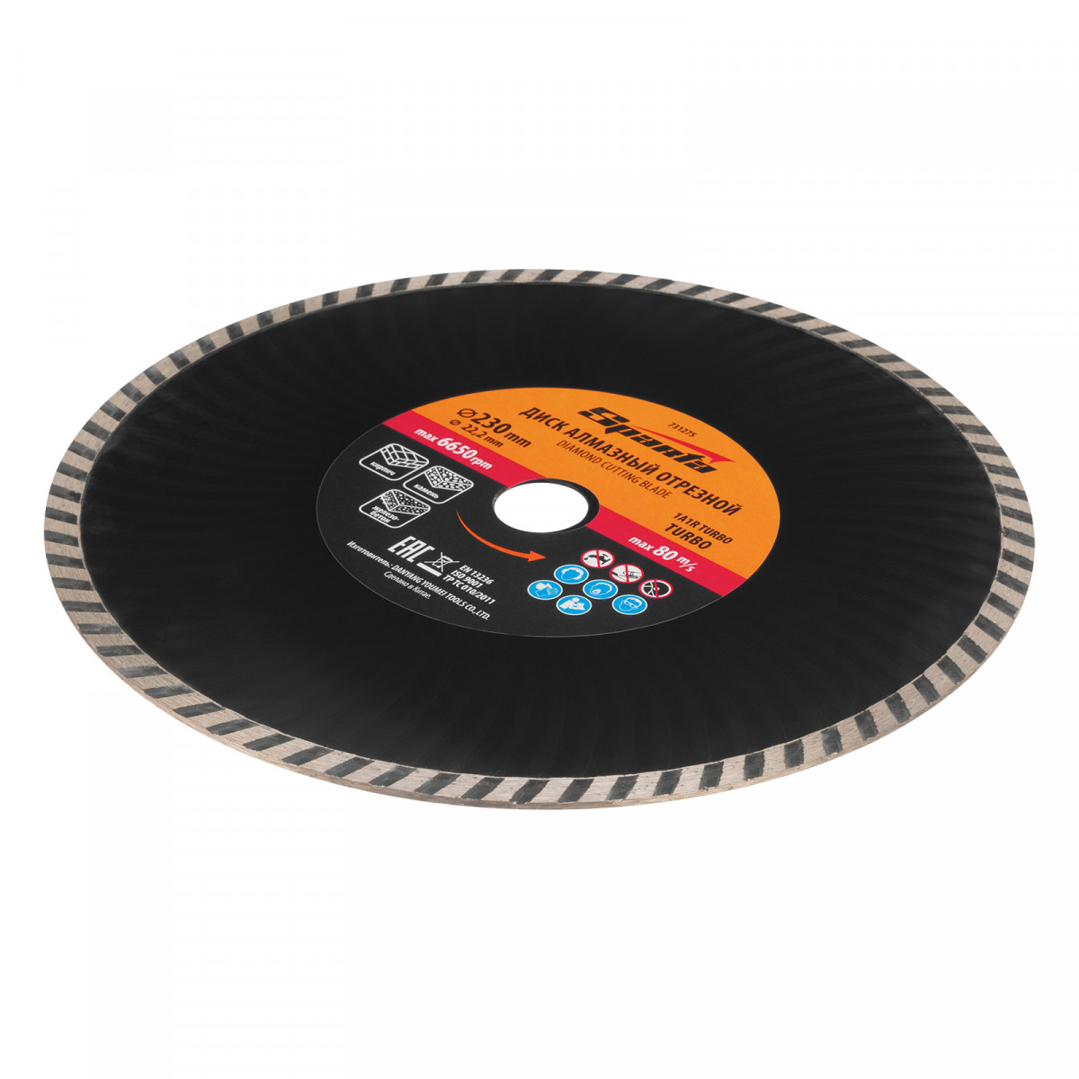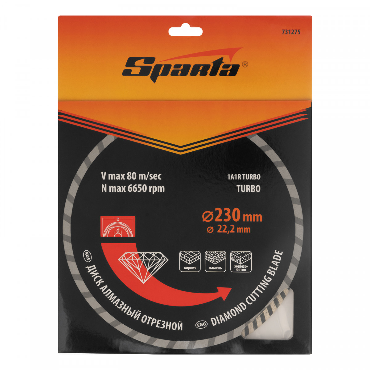 Алмазный отрезной диск Sparta Turbo 731275 для сухой резки, диаметром 230 х 22,2 мм, устанавливается на углошлифовальную машину. Позволяет резать твердые материалы: бетон, железобетон, камень, песчаник. Диск предназначен для бытового использования.