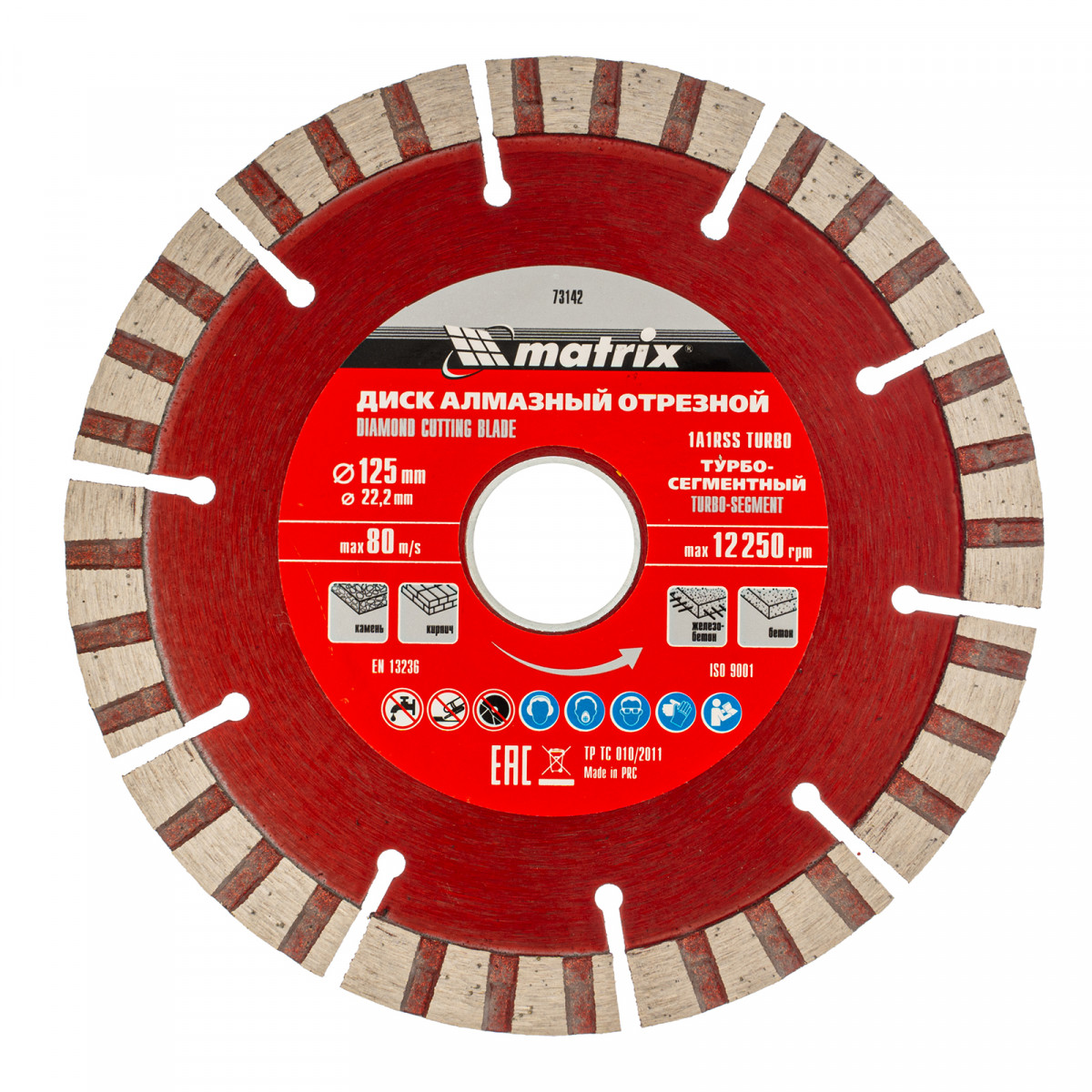 Диск алмазный, отрезной Турбо-сегментный, 125 х 22.2 мм, сухая резка Matrix Professional