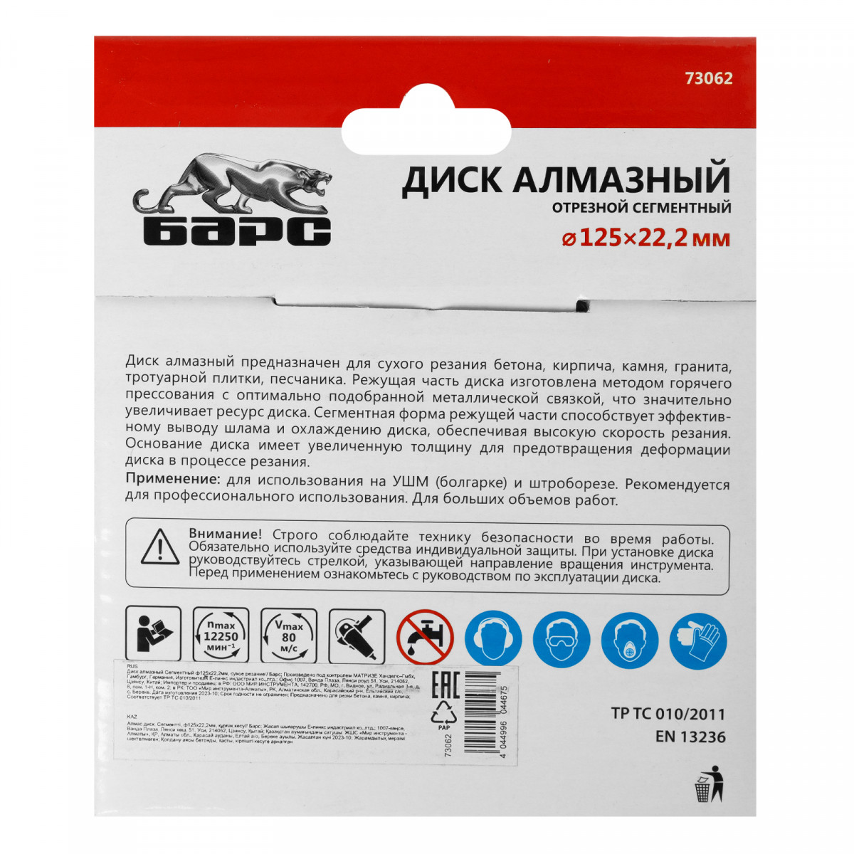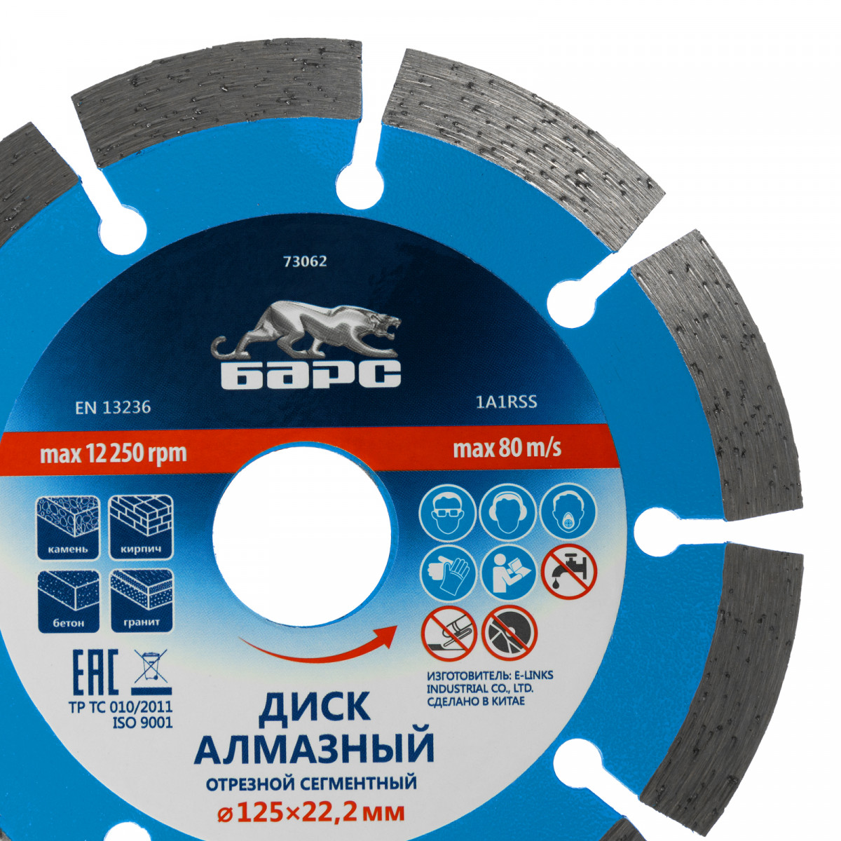 Диск алмазный, сегментный 125 х 22.2 мм, сухая резка Барс