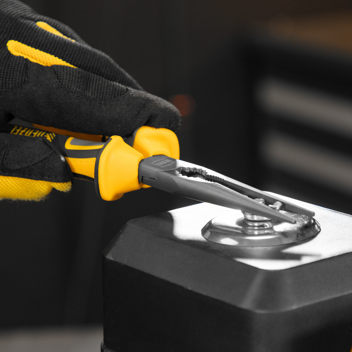 - Устойчивость к нагрузкам и износу — длинногубцы изготовлены из конструкционной углеродистой стали C45, на рабочие части нанесено антикоррозийное полимерное покрытие Titan finish.