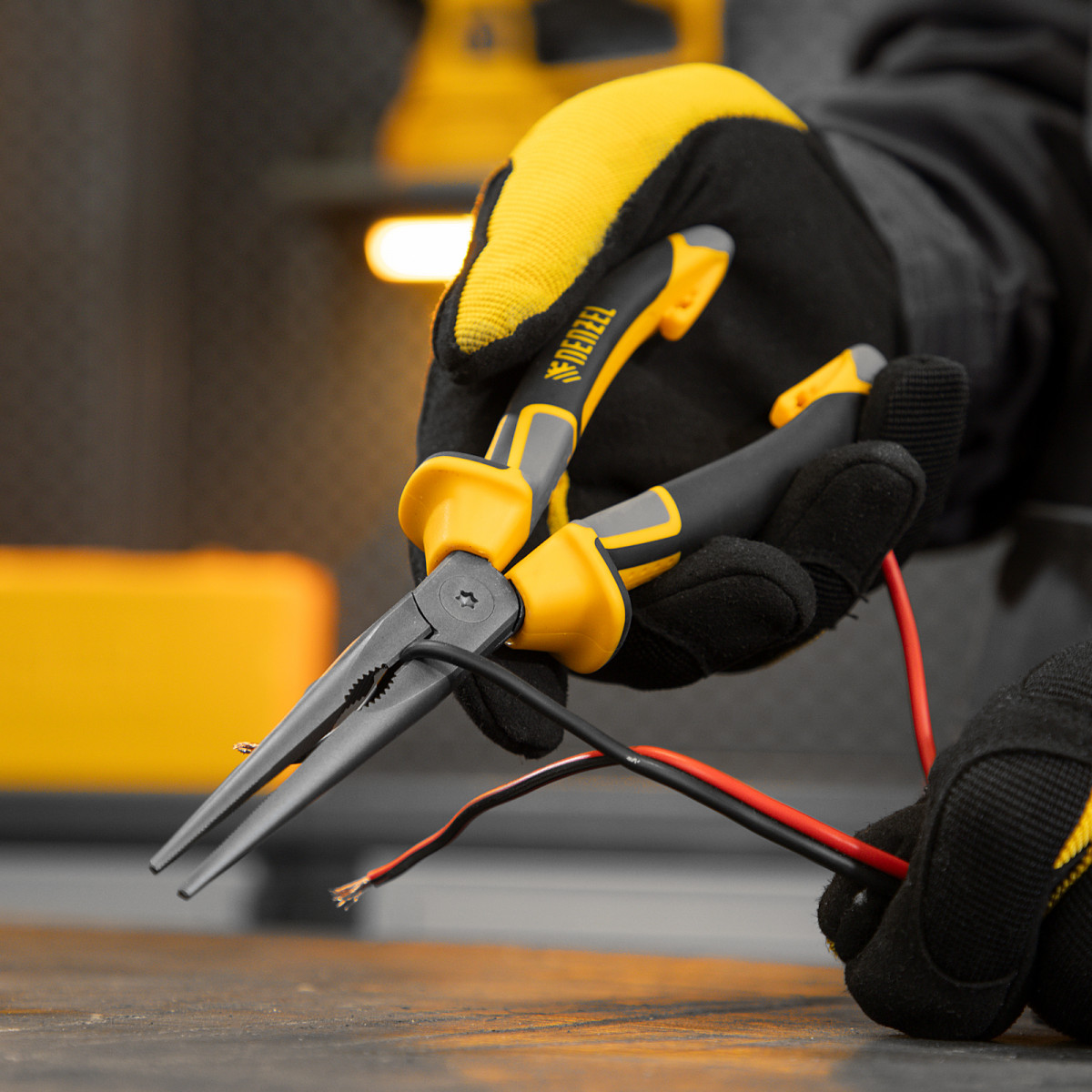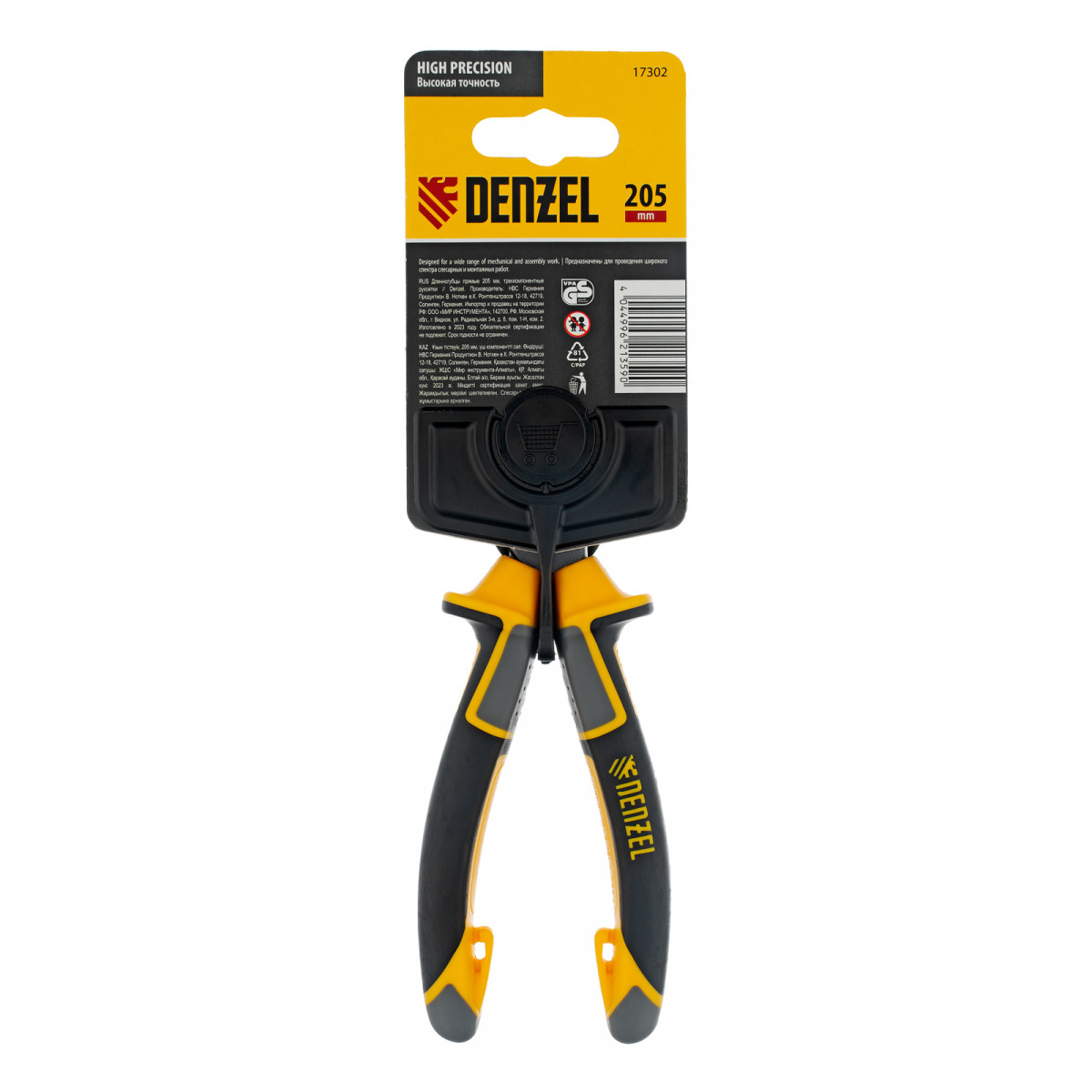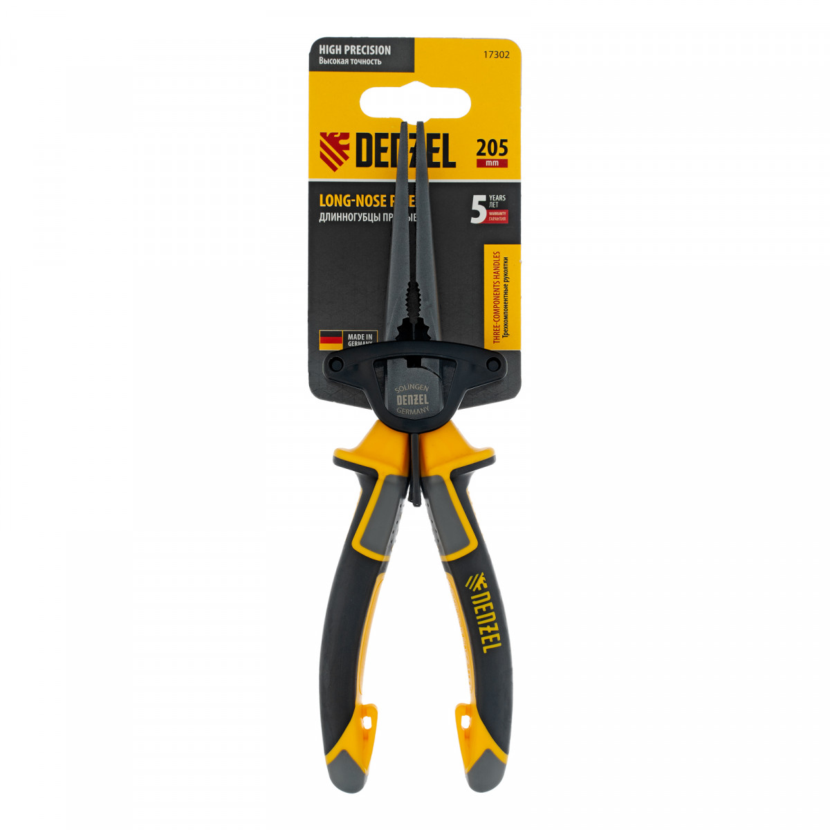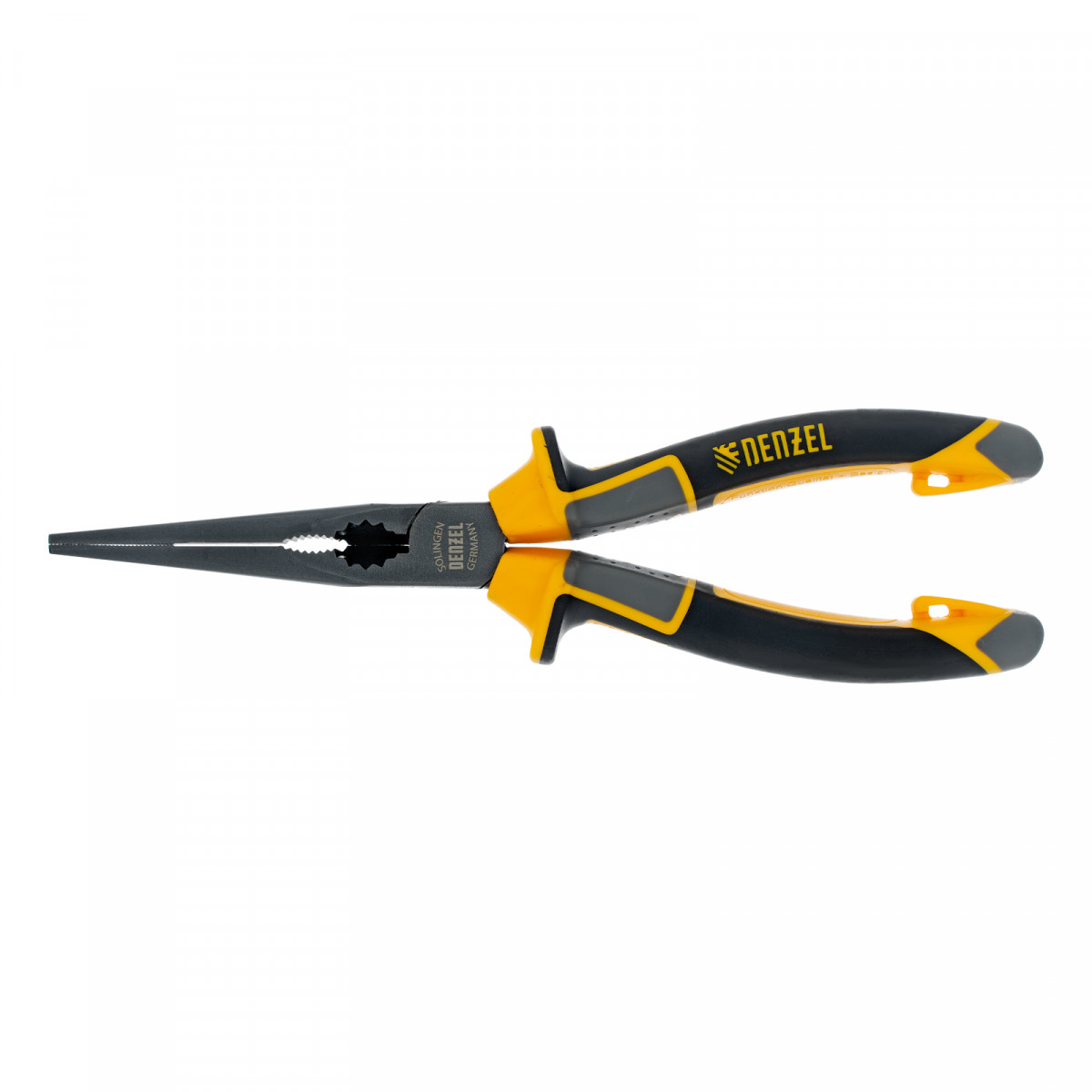 Длинногубцы прямые 205 мм, трехкомпонентные рукоятки Denzel
