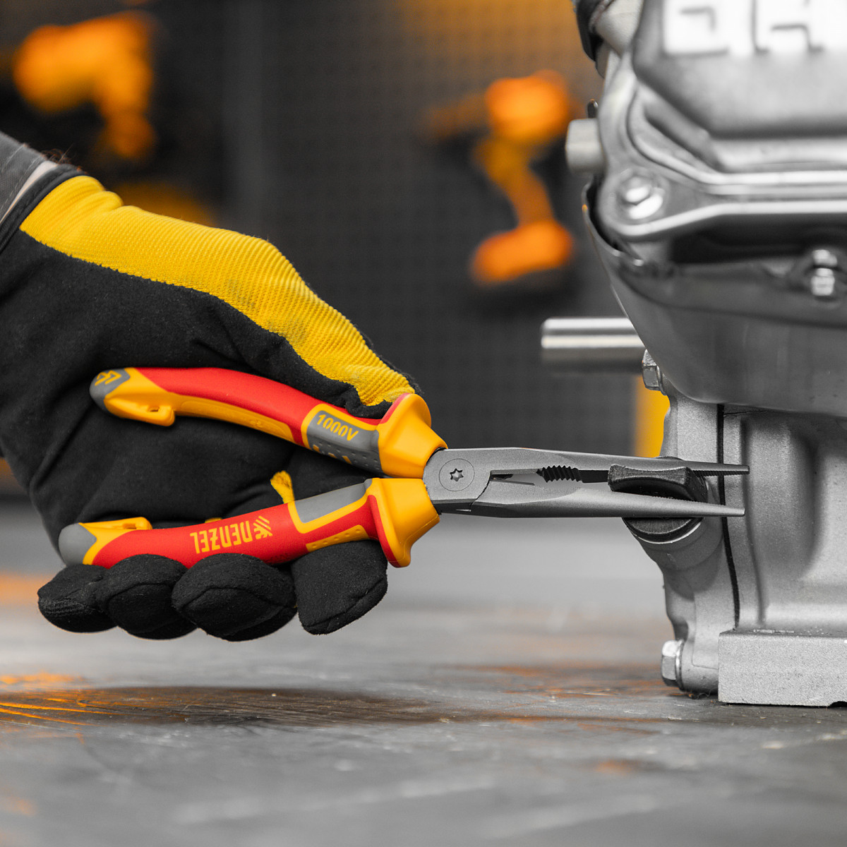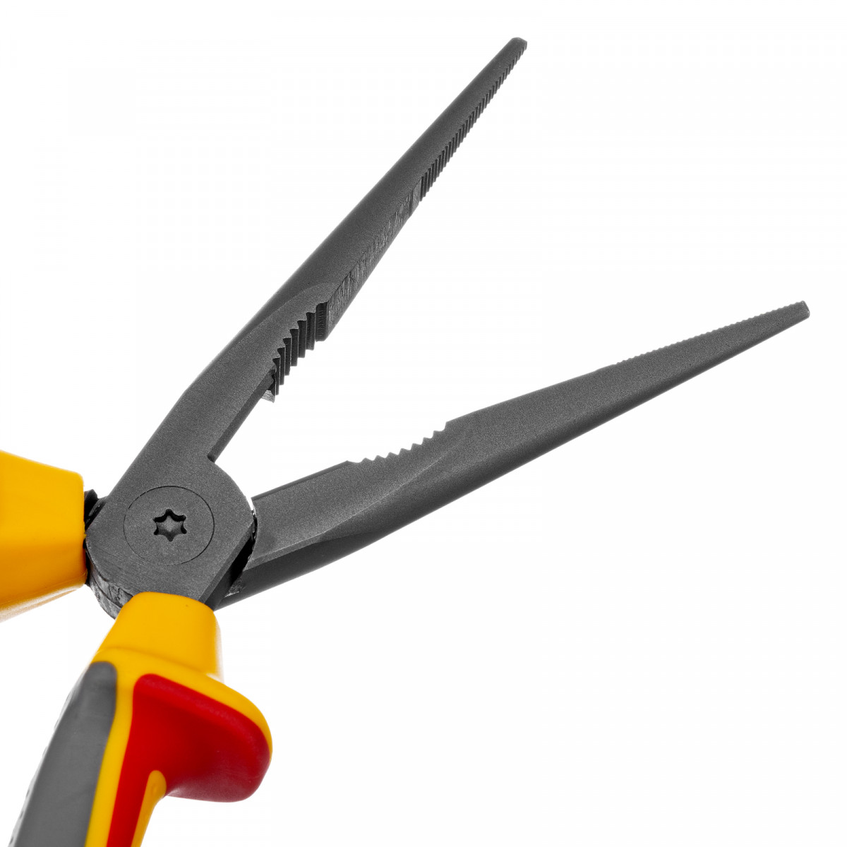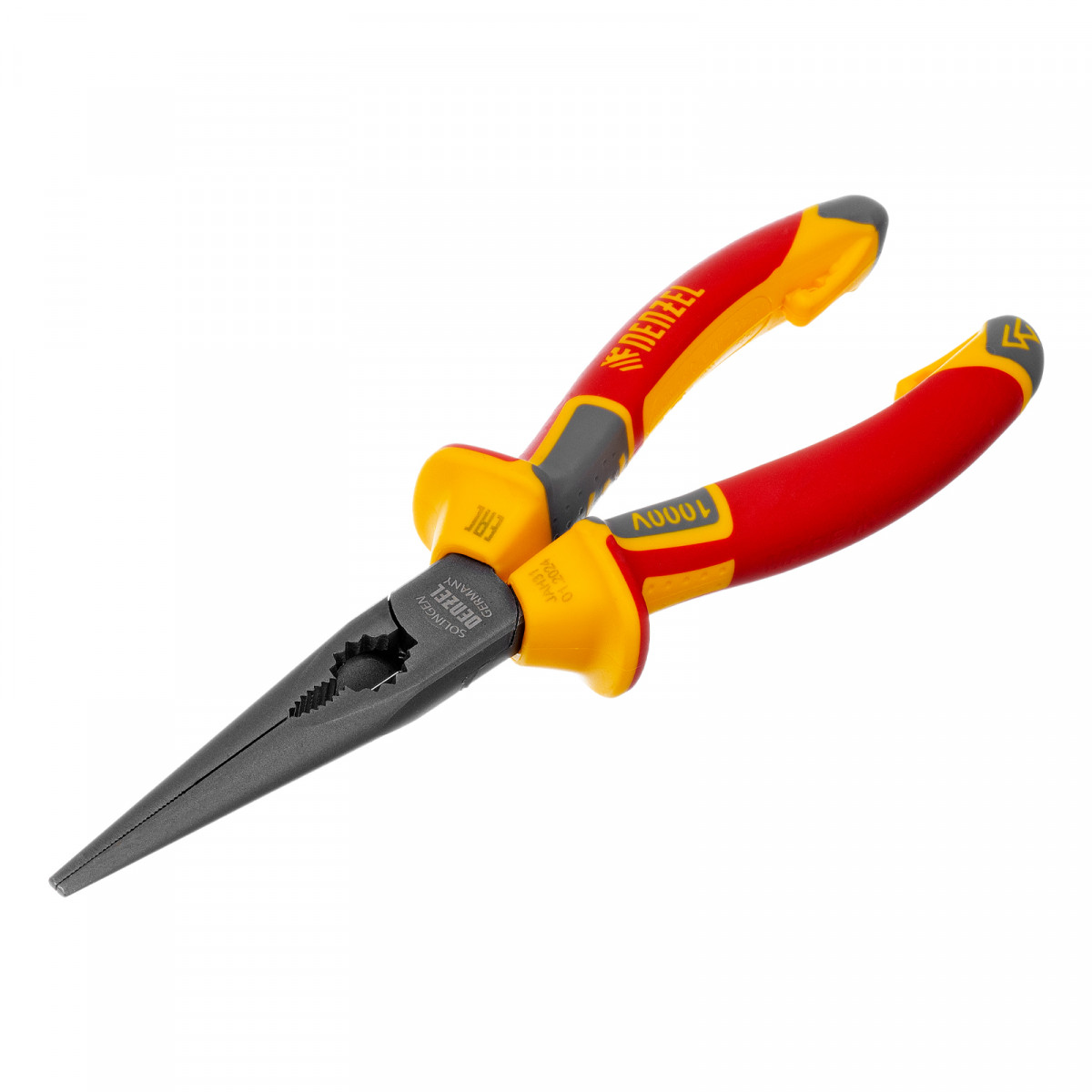 Длинногубцы прямые, диэлектрические рукоятки до 1000 В, трехкомпонентные рукоятки, 205мм Denzel